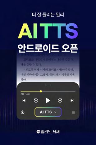 도서를 향유할 수 있도록 독서의 일상화에 앞장 서고 있습니다. 저 또 한 한 명의 밀리의 서재 유저이자, 독자로서 도서 시장이 계속해서 확 장되고 양질의 독서 콘텐츠를 더 많이 즐길 수 있길 기대해봅니다.