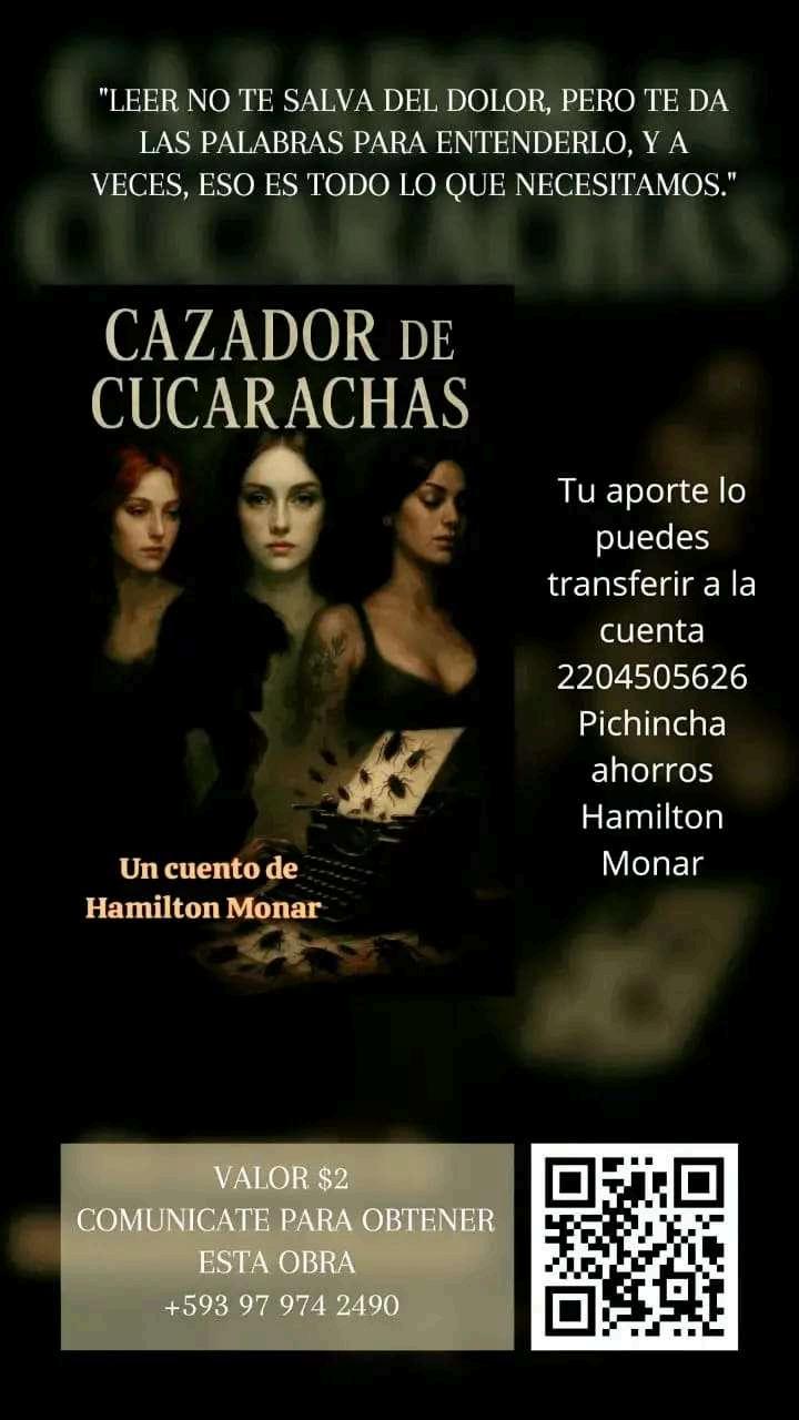 En "Cazador de cucarachas", Monar nos sumerge en una narrativa que combina lo cotidiano con lo insólito, explorando los límites entre la realidad y la fantasía. Este cuento refleja su estilo distintivo, caracterizado por una estética personal y una profunda conexión con las raíces culturales ecuatorianas.