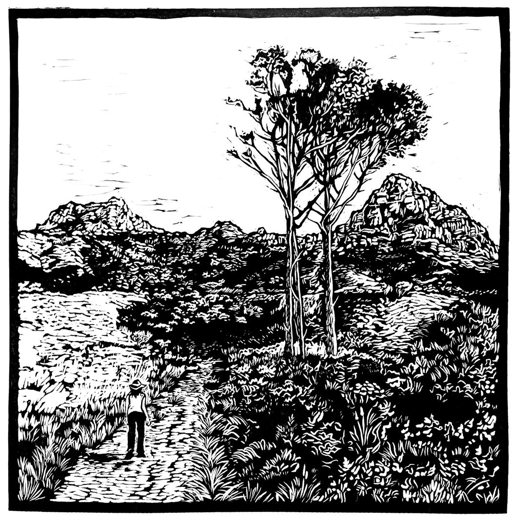 This year I have focused on immersing myself in spaces that are special to me. Really feeling how it is to be there, concentrating on the light and sky and the clouds. This piece “A Monday evening in late summer ” is based on time I spent in the Cederberg earlier this year – a place of big skies and no contact with the outside world. I’ve made what is essentially a sky study, with that portion of the image dominating the print. The heat of the day has lifted the moisture in the clouds, billowing and swirling above me. It is the evening, and I am already in the shadow, but the sun still rests on the highest ridge surrounding the valley, turning the rocks golden. I have used the reduction technique, printing off a birch ply woodblock - my preferred medium at the momentand one that I will continue with.