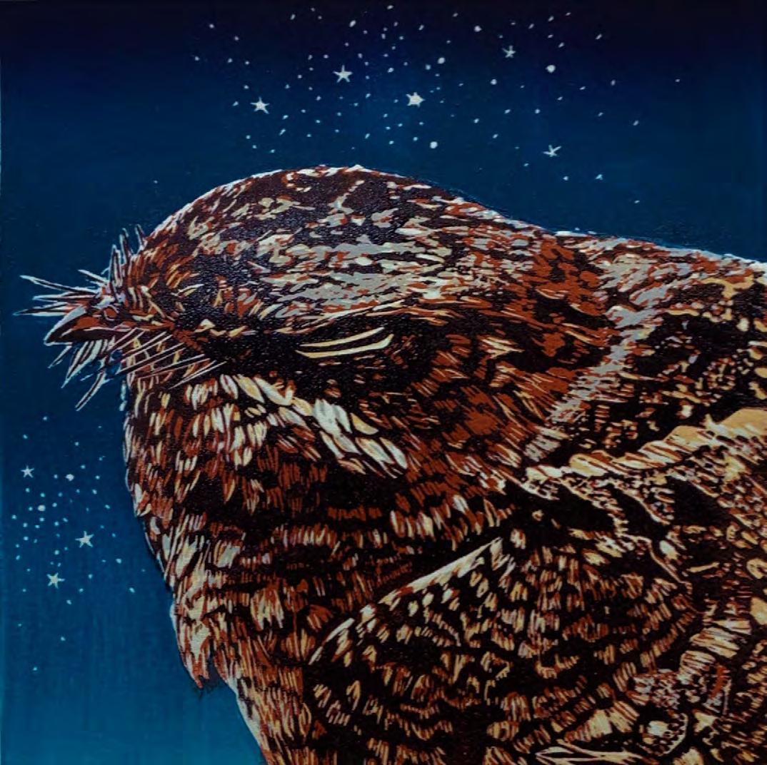 Having travelled to Japan to study the woodblock medium Mokuhanga, my chosen techniques are Mokuhanga and Mokulitho. Both are processes where an image created on wood comes to reflect the natural wood grain of the medium in the final image. I love working with the natural textures of wood and always seek to create an image that responds to the existing grains in my chosen blocks.