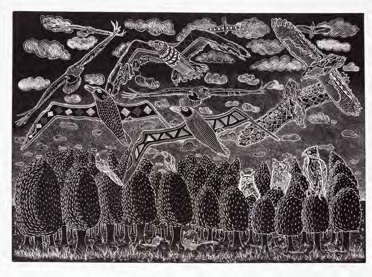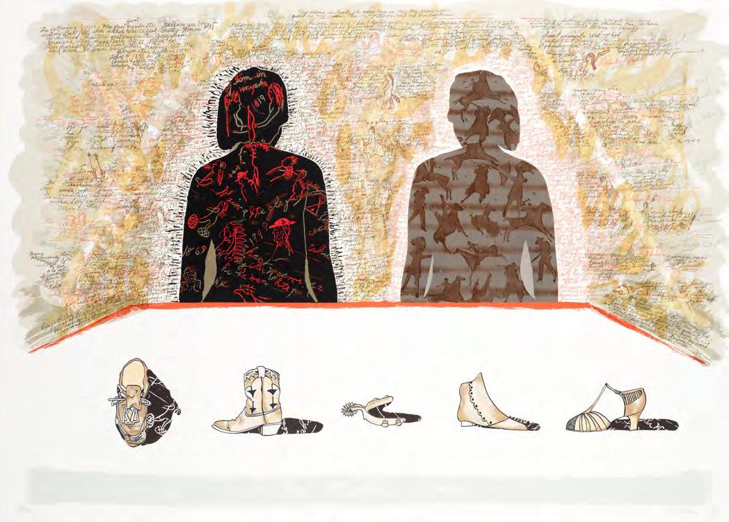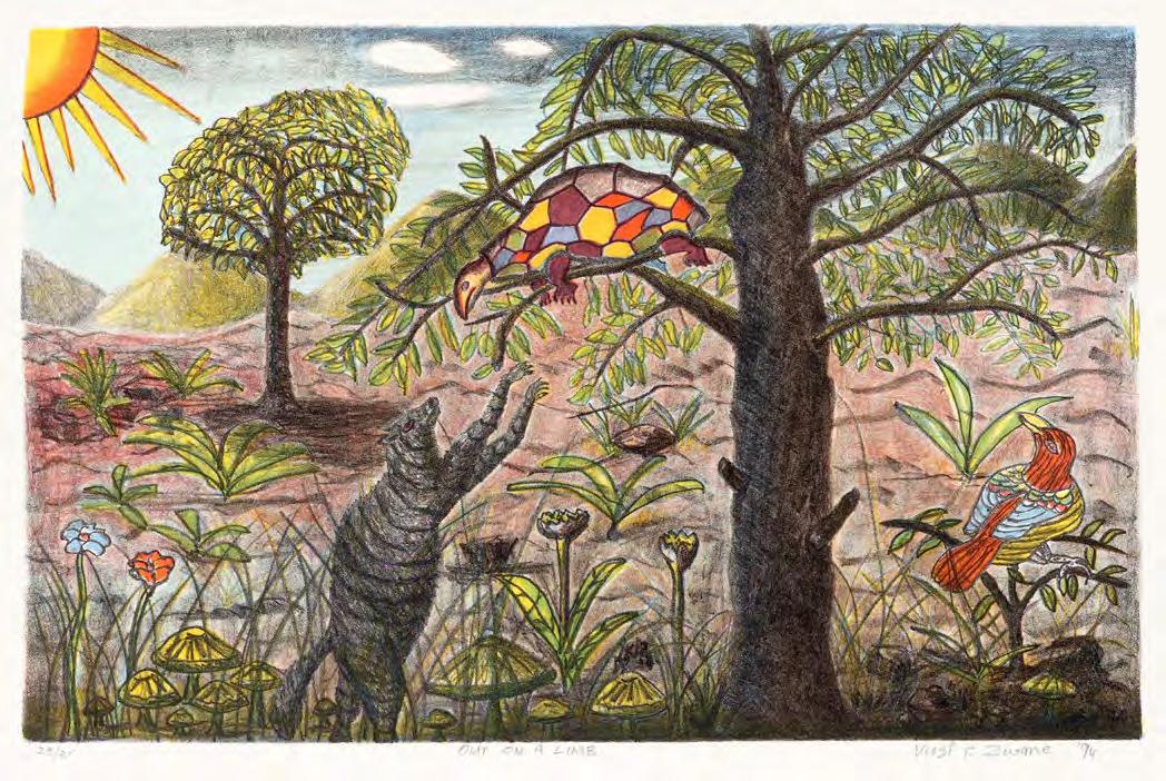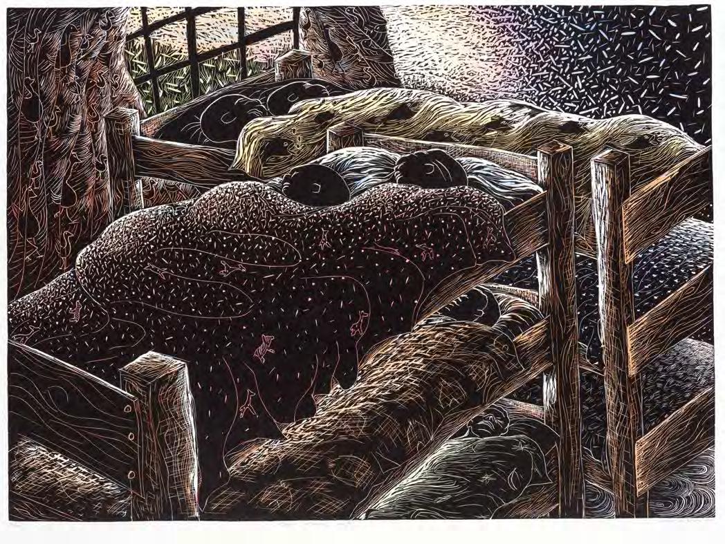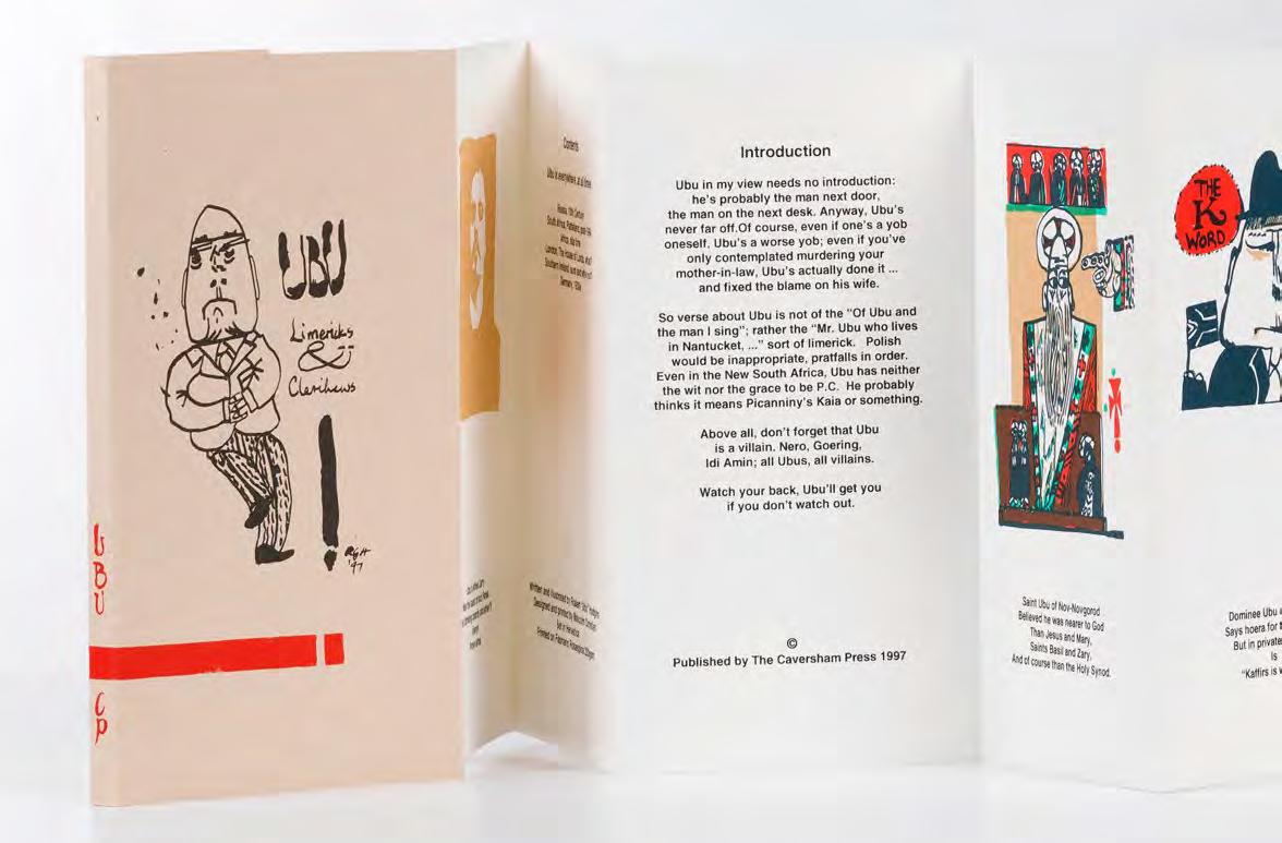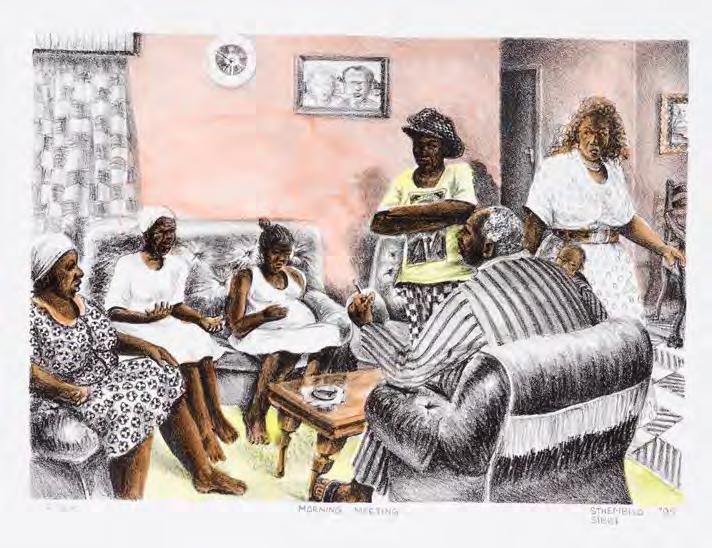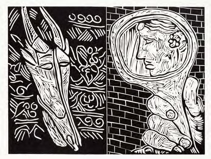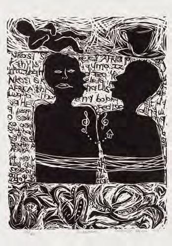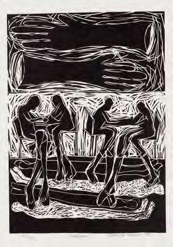 Since Caversham is located in the KwaZulu-Natal Midlands, artists could detach from their dayto-day life and time-based commitments. Daytimes at Caversham were spent working hard in the studio with Malcolm, playing with ideas, making technical explorations, and eventually producing the printed image. Lunch on the stoep and delicious suppers were provided by Ros who, over the years, tirelessly handled studio admin, juggling prints with artists’ needs. Their children, Terry and Sally, grew up sharing their dinner table with some of the country’s top artists and early-career artists, as well as international artists in later years. After supper the artist would retire for quiet contemplation or their YouTube fix. For each artist, Caversham was about creative time-out. Sadly, Caversham has closed its doors to professional printing with artists — but not to its friends.