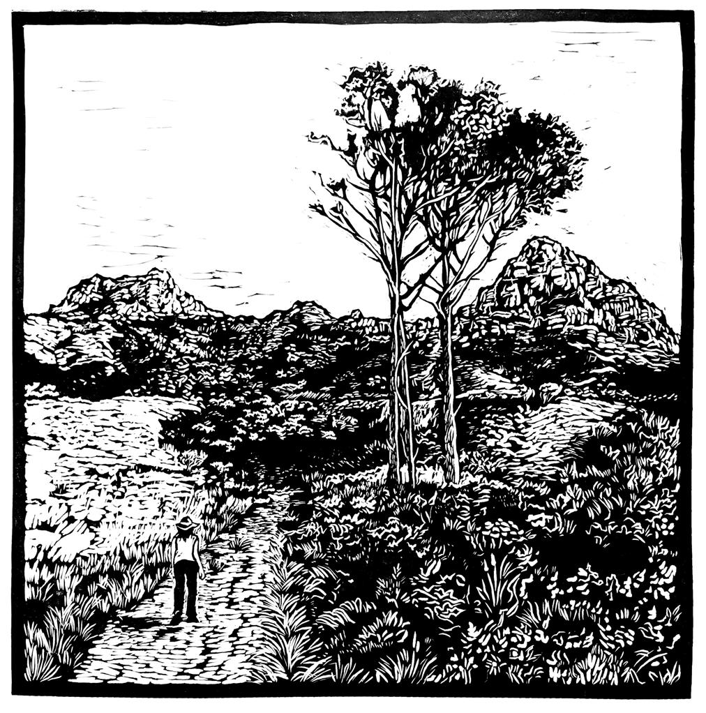'N Dag in die Lewe van 'n Meerkat 2021 Linocut Edition of 8 (The Eco-longing Project) Print exchange