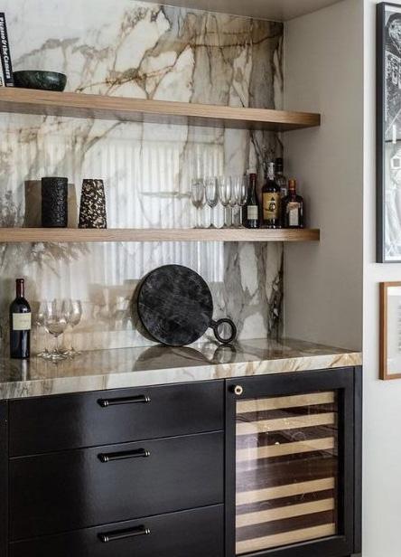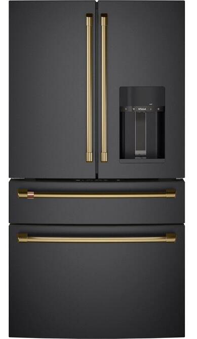 PANELED OR BLACK MATTE FRIDGE W/ BRUSHED BRASS PULLS