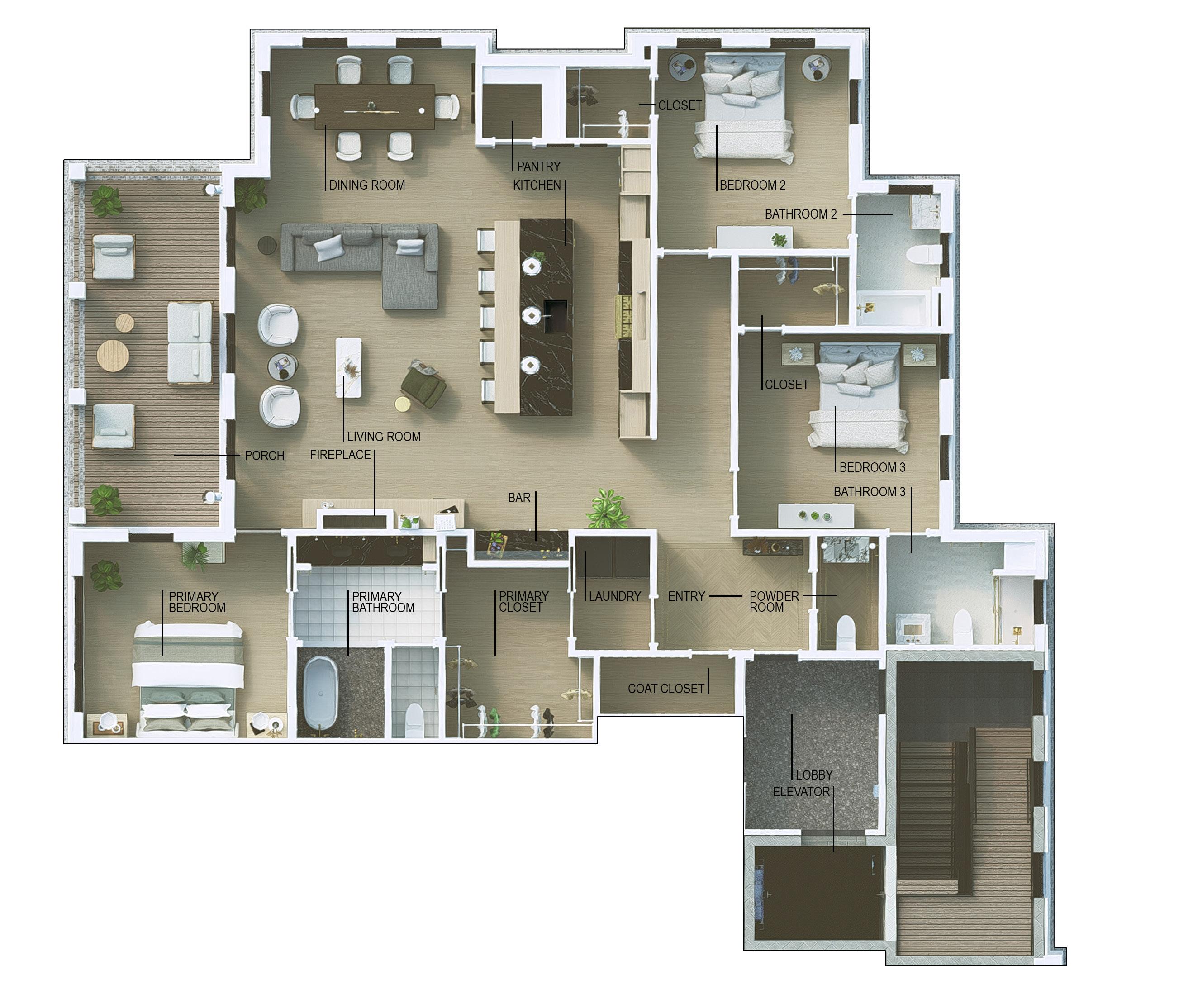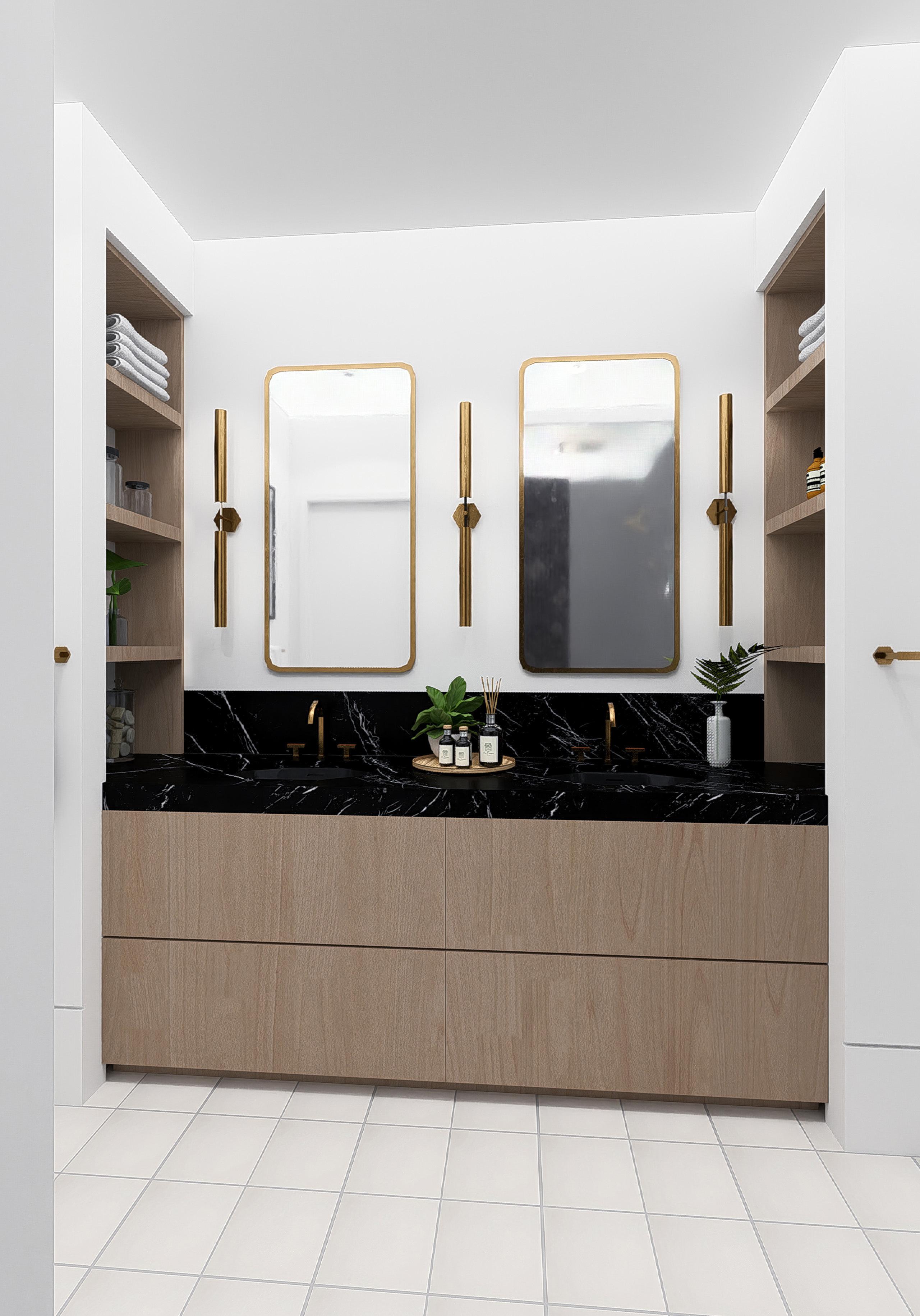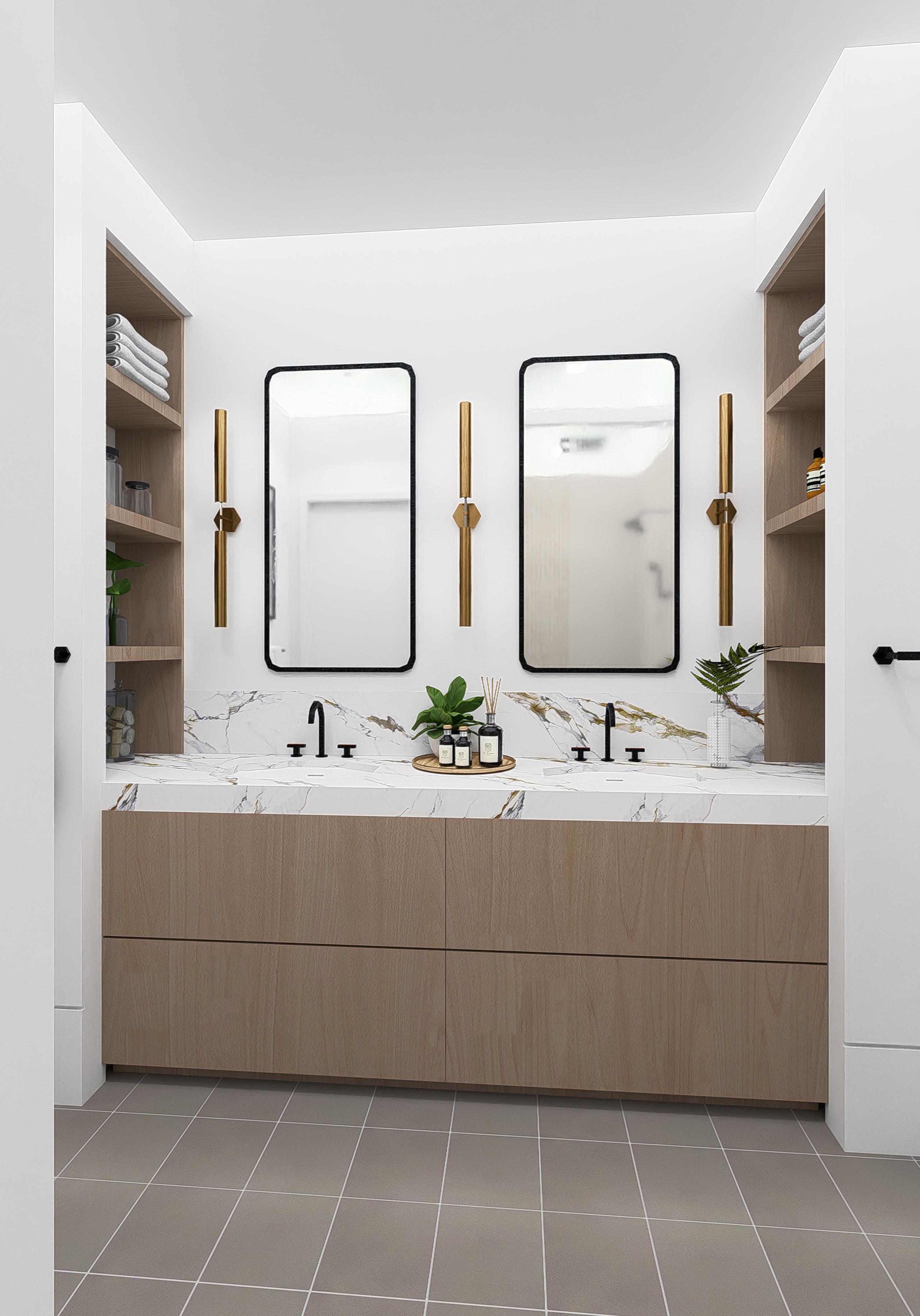 Unpretentious but highly considered, a restrained expression of luxury. To ensure long-term appeal and defy contemporary fleeting trends, the design will focus on high-end and elevated materials throughout, letting the quality of the material be the defining element of the room versus a particular style or aesthetic. A minimal color palette layered with rich woods, natural stone, and lux textures will keep the focus on the design details while ensuring a design that is meant to last.