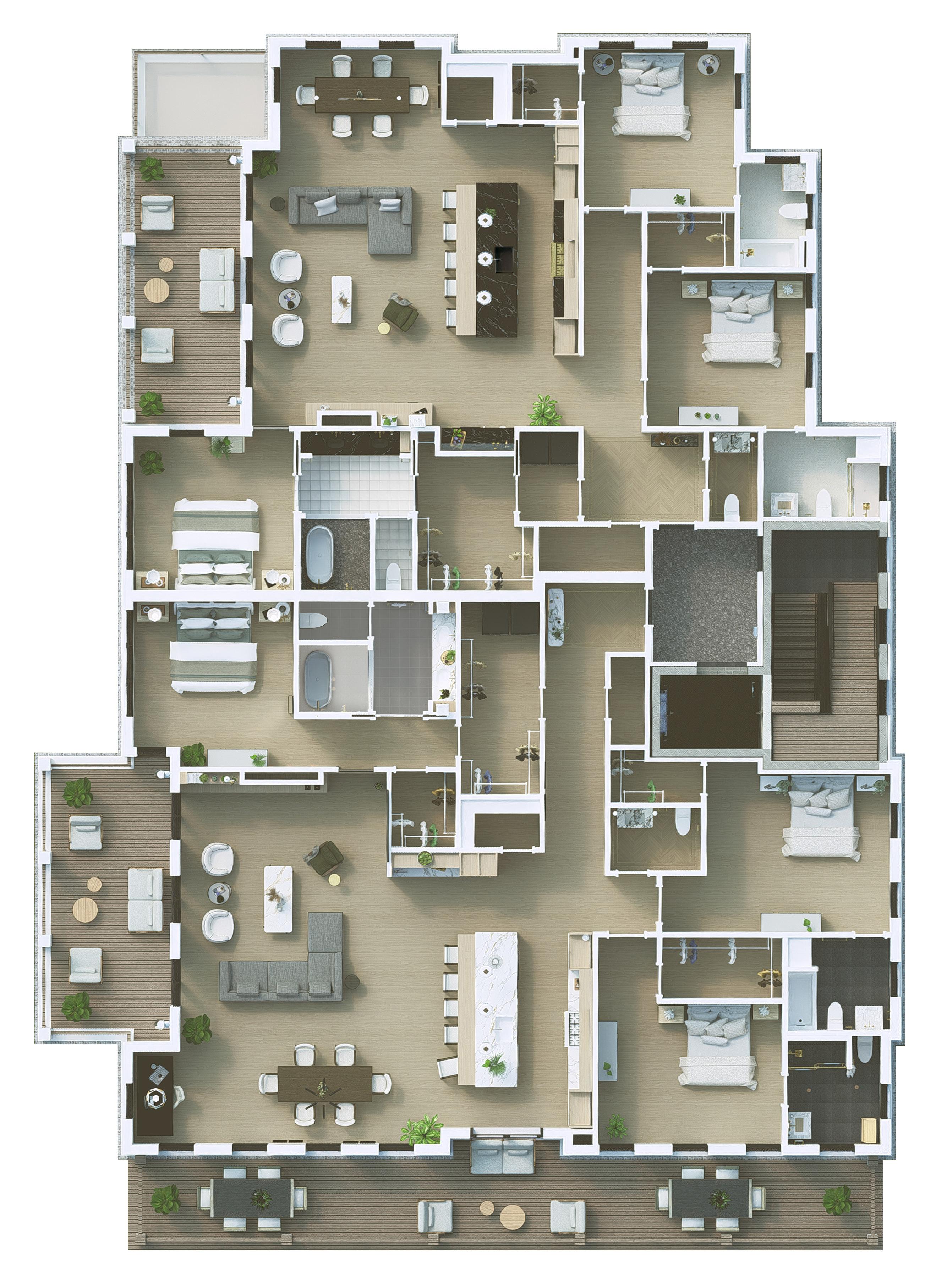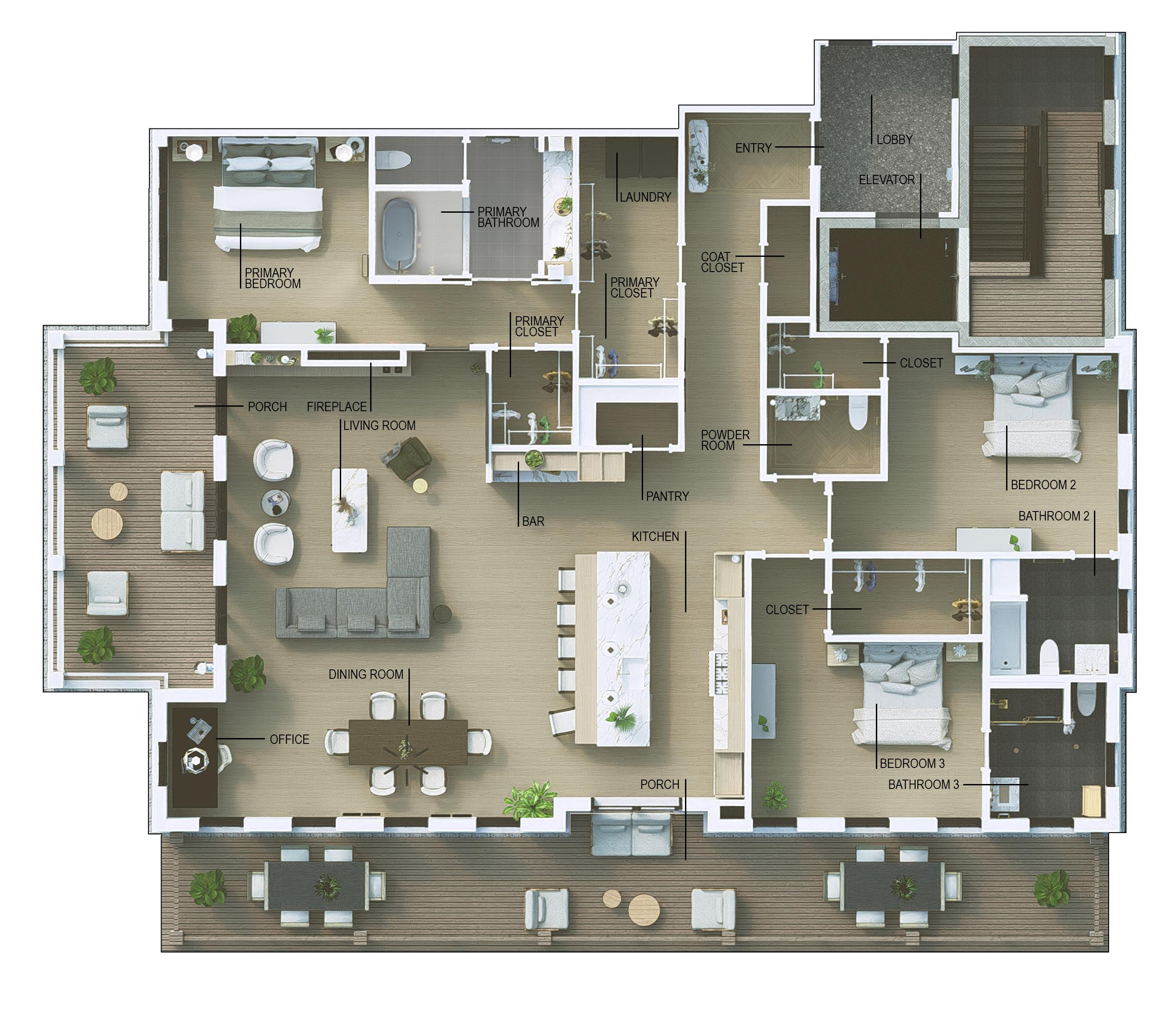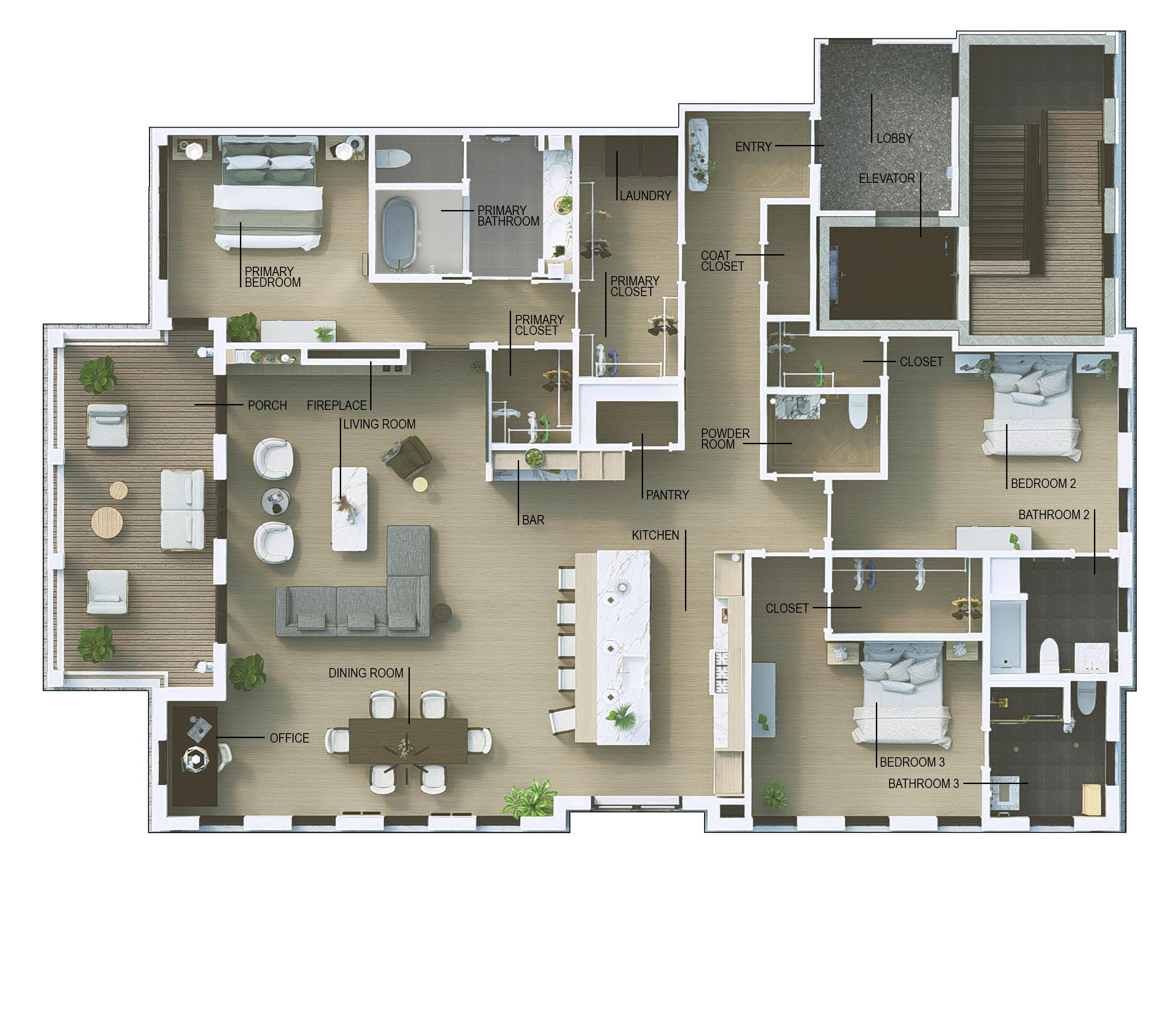 Unpretentious but highly considered, a restrained expression of luxury. To ensure long-term appeal and defy contemporary fleeting trends, the design will focus on high-end and elevated materials throughout, letting the quality of the material be the defining element of the room versus a particular style or aesthetic. A minimal color palette layered with rich woods, natural stone, and lux textures will keep the focus on the design details while ensuring a design that is meant to last.