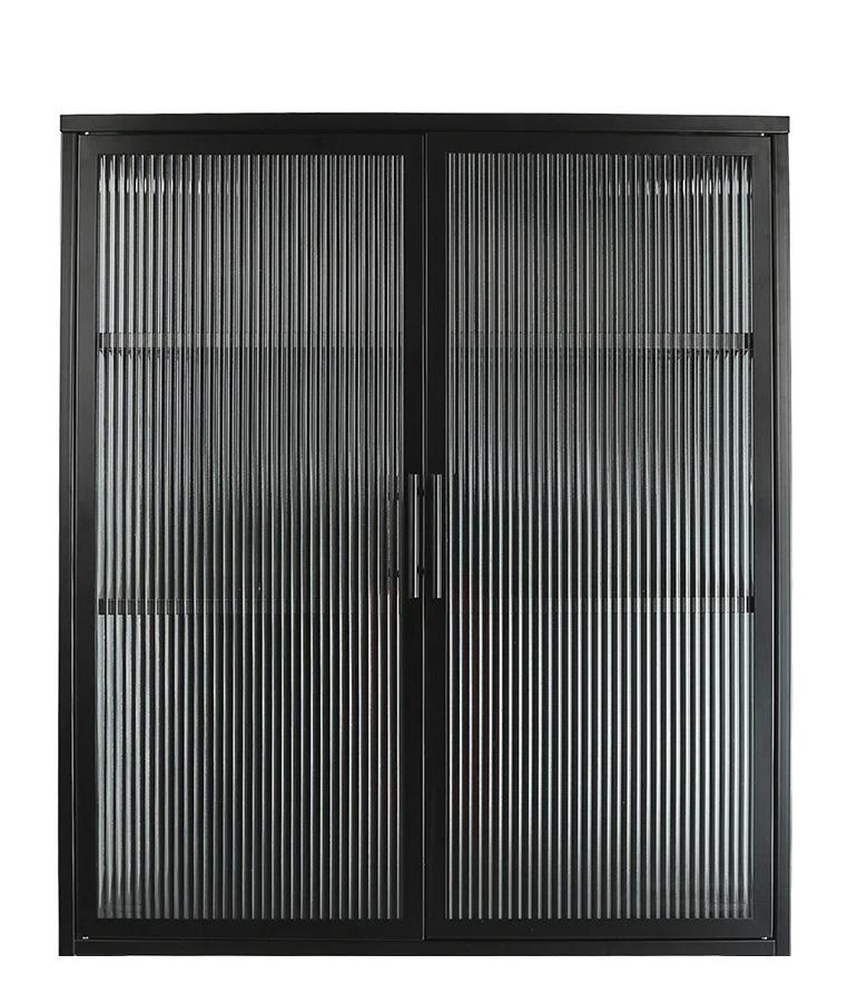 REEDED GLASS UPPER CABINETS BLACK MATTE GAS STOVE