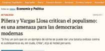 Sebastián Piñera, el Pdte. Felipe Calderón y el Premio Nobel Mario Vargas Llosa que tuvo gran repercusión en la prensa.