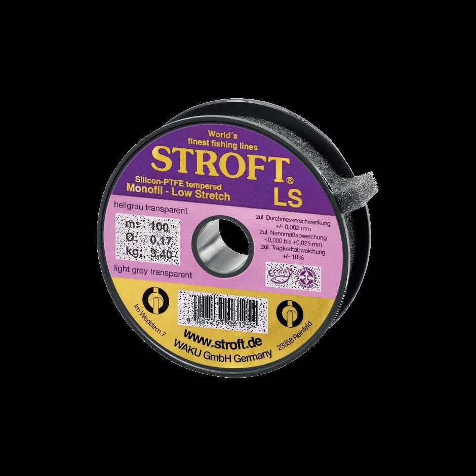 STROFT LS (LOW STRETCH)se desarrolló sobre la base de una nueva aleación de poliamida, con el objetivo de conseguir un sedal con un bajo factor de elasticidad y la mayor tensión de rotura posible. Sólo las líneas trenzadas de UHMWPE poseen un factor de elongación inferior.