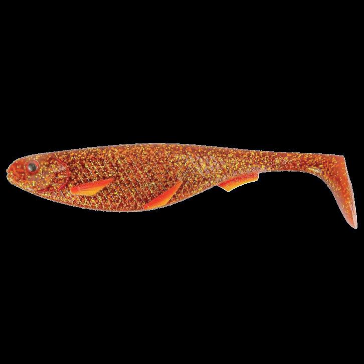 Interior de branquias pintadas en rojo intenso y aleta en rojo degradado
