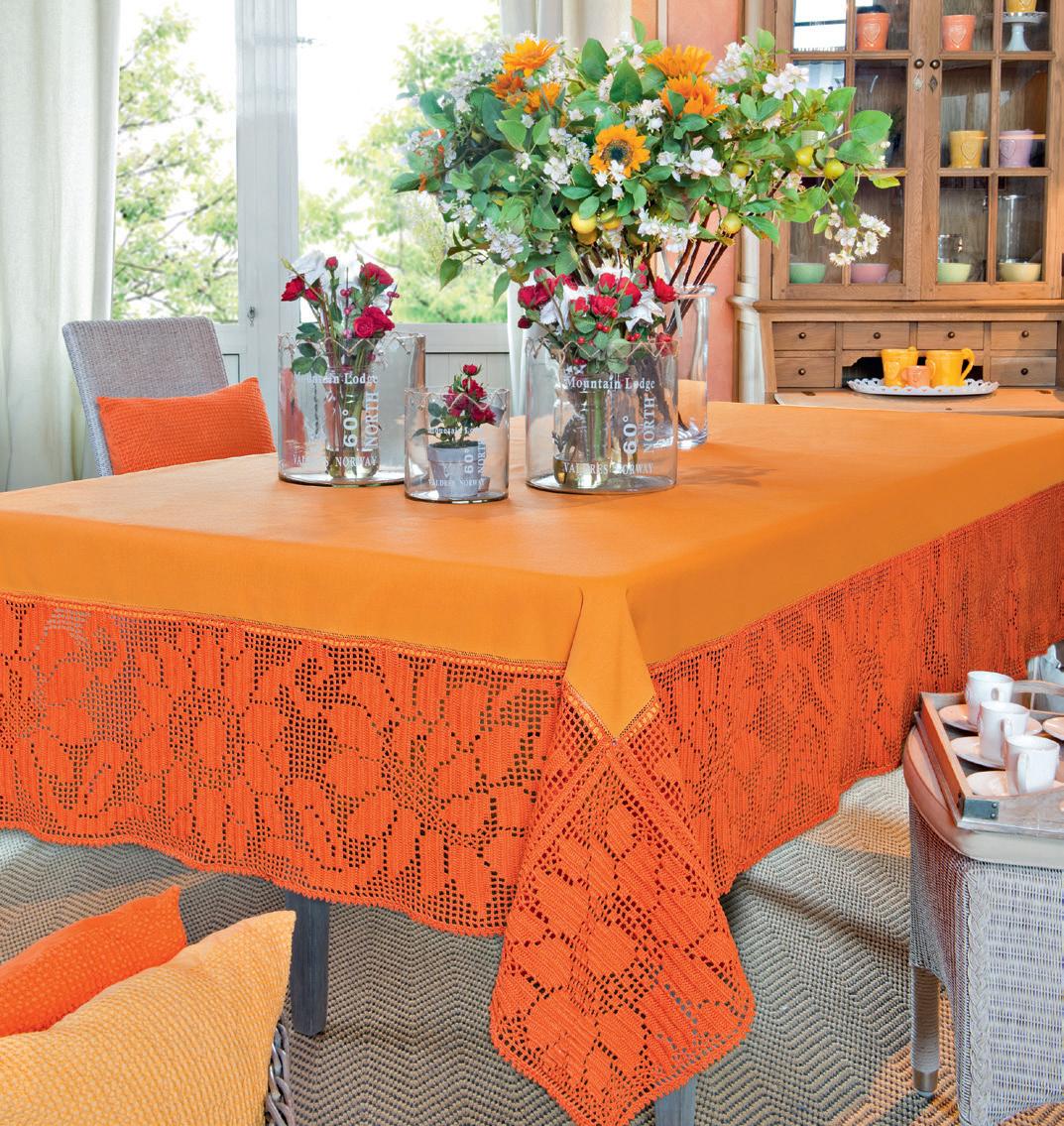 Composto da tessuto di cotone arancio (taglio tela cm 180x270), cotone biologico “Cablè 5 Bio” (29 gomitoli) e schema su carta a quadretti con spiegazione per confezionare il tappeto tavola.