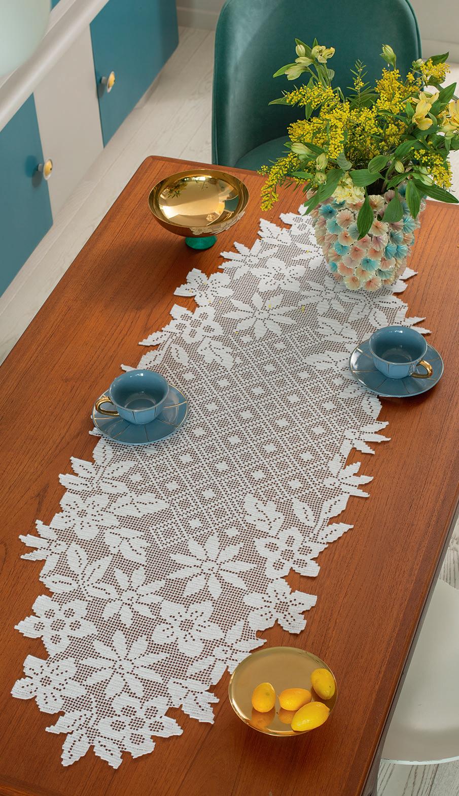 Come dare subito un tocco moderno, magari un po’ shabby a un runner filet? Noi abbiamo pensato a del tessuto nel colore più glam della stagione.