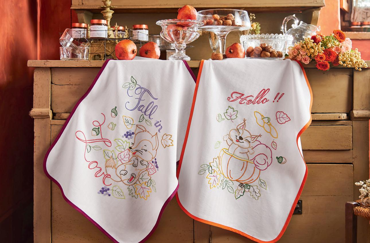 Tempo di colazioni e merende all'aperto. Le mele sono protagoniste di deliziose tovagliette sagomate con una parte in aida che il punto croce potrà decorare con tutta la sua simpatia. E per un pranzo speciale, ordina anche la tovaglia in tessuto fantasia, disponibile in più misure... E che dire dei tovaglioli? I quadretti hanno sempre successo. Schema a pag. 14.