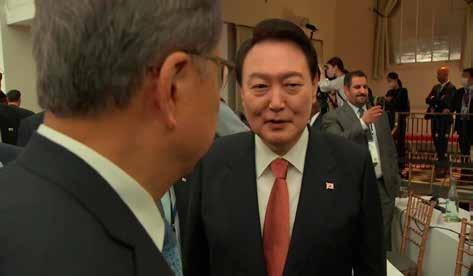 자신의 조국 에 집중하시죠.”라고 남겼고, 공화 당의 피터 마이어 하원의원은 “이 봐, 그런말은 우리만 할 수 있는거 야.”라며 윤대통령이 미의회를 바 보라고 칭한 기사의 링크를 포스팅 했다. 또한, 의회 관계자들은 “한국이 인 플레이션 감축법 개정을 위해 공 을 많이 들이던데 그 법 개정, 의회 가 하는 것”이라고 꼬집었다. 마닐라서울편집부 윤석열 대통령과 조 바이든 미국 대통령이 21일(현지시간) 미국 뉴욕 한 빌딩에서 열린 글로벌펀드 제7차 재정공약회의를 마친 뒤 대화를 나누고 있다. (연합뉴스) 윤대통령이 바이든 대통령과 48초간의 환담을 나누고 내려오며 박진 외무장관 을 마주하고 문제의 발언을 하고 있다.(사진 KBS캡쳐)