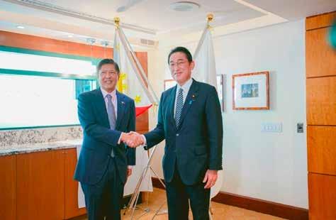 2022년 9월 24일 토요일제1340호「A-10」 마르코스-기시다, 보다 긴밀한 안보·경제적 유대 약속 페르디난드 "봉봉" 마르코스 주 니어 대통령은 총리는 기시다 후 미오(Kishida Fumio) 일본 총리 가 안보와 경제 문제를 해결하기 위해 일본과 필리핀의 협력을 계 속 강화할 것이라고 밝혔다. 마르코스 대통령과 기시다 총리 의 만남은 뉴욕시에서 개최된 제 77차 유엔 총회 중간에 열린 양 자 회담에서 이루어졌다. 22일 목요일(마닐라 시간) 성명 에서 트레시 쿠르즈 엔젤레스 대 통령궁 대변인은 두 세계 정상이 지역 안보와 경제 환경의 도전 속에서 유대를 강화하기로한 결 의를 재확인했다고 말했다. 엔젤레스 대변인은 “두 정상이 만나 필리핀과 일본 관계 발전에 대해 논의했다.”며 “양국의 전략 적 동반자 관계가 안보와 국방 분야에서 “엄청난 성장과 심화된 협력을 이끌어냈다.”고 말했다. 그녀는 회담에서 두 정상이 지 역 안보와 경제 환경의 도전과 기 회에 대응하여 유대를 강화하고 협력을 강화하겠다는 약속을 재 확인했다고 덧붙였다. 두 정상이 직접 만나 필리핀-일 본 양국 관계 발전에 대해 논의