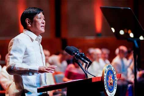 관계가 우리를 더 회 복력 있는 경제로 이끌 것이라는 믿음을 확고히 유지하고 있다"고 덧붙였다. 트릭시 크루즈-엔젤레스 공보장 관은 마르코스가 미-아세안 기 페르디난드 "봉봉" 마르코스 주니어 대통령이 일요일(2022년 9월 18일) 뉴저지 공연예술센터에서 미주 필리핀 커뮤니티와의 만남에서 연설을 하고 있다. 사진 OPS 업평의회와 미 상공회의소를 만 난 것은 경제개혁과 투자자 유치 를 위해 정부가 취하고 있는 조 치를 논의할 기회라고