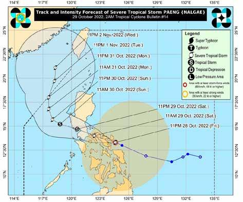2022년 10월 29일 토요일 「A-1」 제1344호 가치있는 정보, 한결같은 신문 kakao talk: @마닐라서울 http://issuu.com/manilaseoul1 마닐라서울 홈페이지: manilaseoul.co.kr 제 1344호 2022년 10월 29일 토요일 마닐라서울 신문광고 및 배송 안내 신문 광고 및 배송을 원하시는 업체는 아래 번호로 연락 바랍니다. 0956-807-1878 ■ 발행처: Manila Seoul Weekly International ■ 편집인: 양한준 ■ 창간일: 1994년 8월 27일 ■ Copyright: 1994-2022,. ■ 이메일: manilaseoul@gmail.com ■카카오톡:@마닐라서울 태풍 "Paeng”으로 인해 필리핀 전역에 엄청난 피해 발생 정부, 1년간 국가재난사태 선포 고려 중 재난관리청, 29일 현재 사망자 72명에서 45명으로 정정, 실종 14명 필리핀 재난관리청(NDRRMC) 은 29일 토요일 오후,