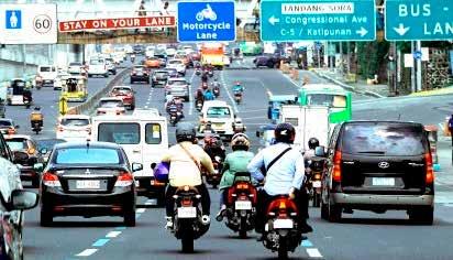 같은 도로의 2차선과 3차선은 각 각 공공차량(지프, UV익스프레스, 버 스) 전용차로와 오토바이 전용차로 로 지정된다.