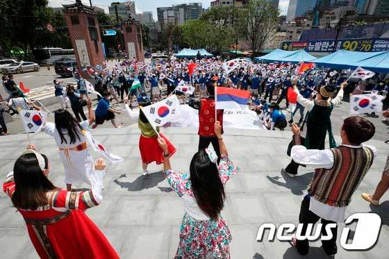 '외국 거주하며 동포사회 기여' 취지 어긋나 / 김상희 의원 "선발조건·사후관리 강화 절실" 25일 서울 종로구 인사동에서 재외동포재단 주최로 열린 '대한민국 이민 120주년, 새로운 길을 열다' 캠페인에 참가한 재외동포 및 대학생들이 댄스 퍼포먼스를 선보이고 있다. 사진 뉴스1