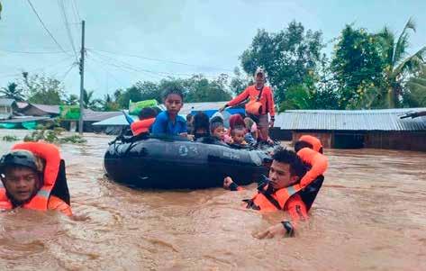 마닐라서울편집부 2022년 10월 28일 필리핀 해안경비대가 레이테주 힐롱고스에서 침수 지역에서 구조대원들이 주민들을 대피시키고 있다. 사진 필리핀스타 태풍 “파엥”의 예상 이동경로가 26일보다 남쪽으로 내려오면서 태풍 중심이 메트로 마닐라를 지나가고