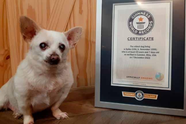 2023년 1월 21일 토요일 제1356호 「B-18」 미국 23살 치와와, '현존하는 최고령 견공' 기네스 세계기록 유기됐다 10살 때 구조…"건강식과 돌아다닐 공간, 사랑을 주세요" 미국에 사는 23살 치와와 스파이 크가 현존하는 최고령 개로 기네스 세계기록(GWR)에 이름을 올렸다고 CNN 방송이 20일(현지시간)