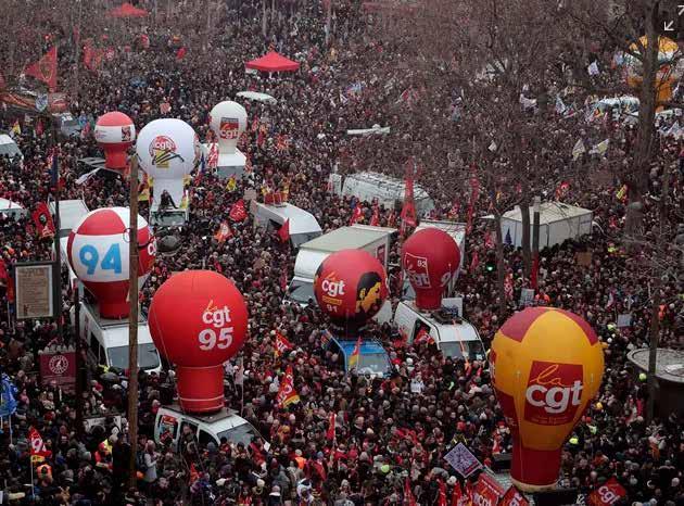 이날 프랑스 전역에서 100만명 넘는 인원이 에마뉘엘 마크롱 대 통령이 추진하는 퇴직연령을 62 세에서 64세로 늦추는 것을 핵 심으로 하는 연금개혁에 반대하 는 시위를 벌였다. 마크롱 대통 령은 연금개혁을 변함없이 추진 하겠다는 입장을 밝히고 있다.