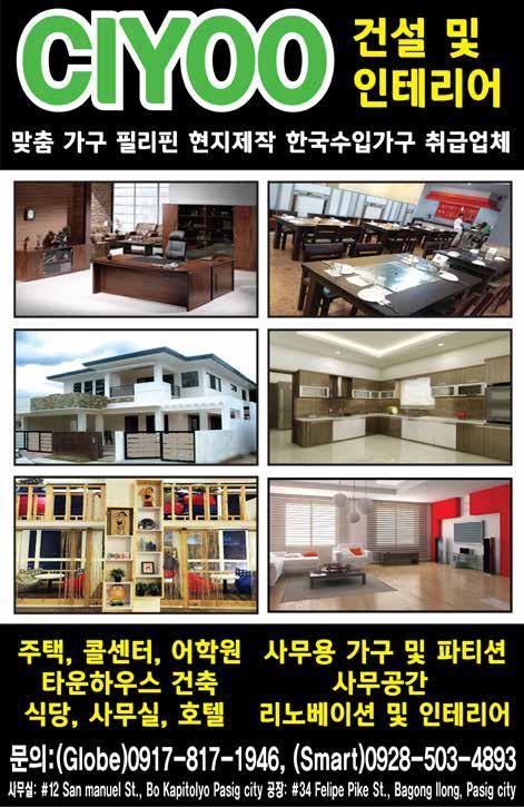 주평통 동남아북부협의회 노준환 회장, 필리핀상공회의소 엄현종 회 장, 필리핀한인경제인총연합회 박 복희 회장, 필리핀한인여성연합회 방세실리아 부회장, 코윈 필리핀 발을 바로 세울 수 있었습니다. 성 금과 구호품, 후원금과 한인 회비 를 모아 주신 한인동포 여러분께 다시 ..............................A-3면 이어짐