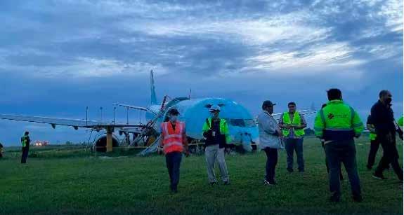 해당 항공기는 활주로를 이탈하면 서 앞쪽 바퀴와 동체가 크게 손상되 었다.