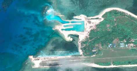 2019년 10월 3일자 위성사진은 활주로 보수와 서필리핀해 파가사섬의 새로운 해변 경사로 건설을 보여준다. 사진 필스타