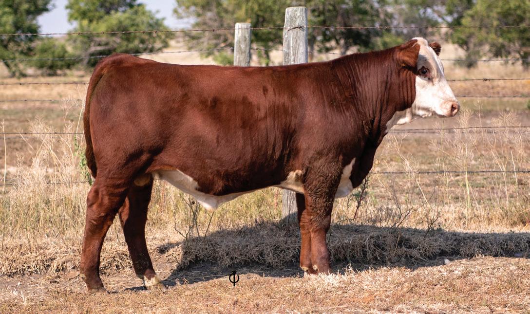 Lot 14 - Calco 173D Rickards Red 239J sired by NJW 79Z Z311 Endure 173D ET was purchased by Acorn Ridge Polled Herefords, Kleefeld, MB for $7,500.00