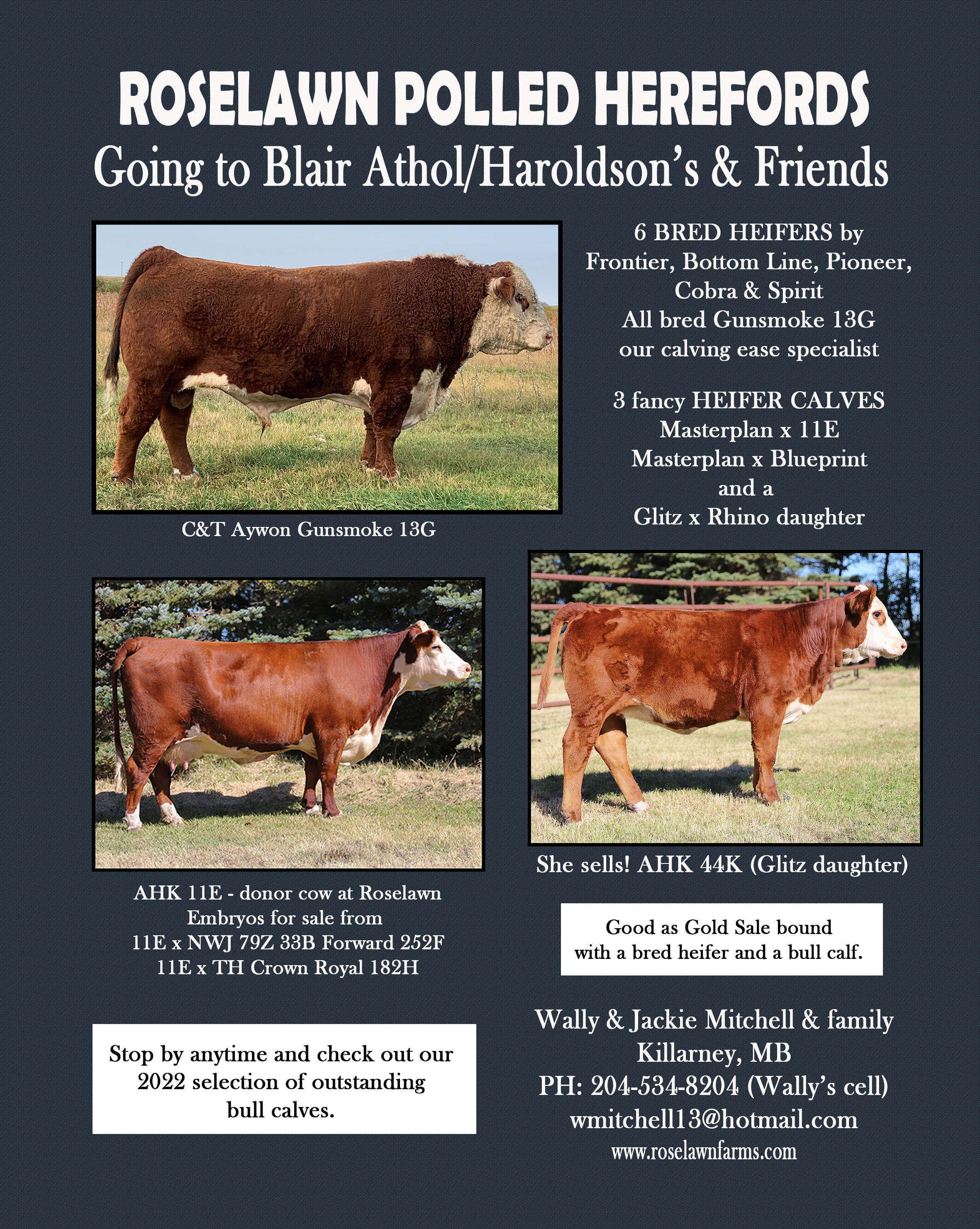Albert & Michelle Rimke Jay Rimke Samantha & Trey Koroscil Levi Rimke Box 370 Oak Lake, MB R0M 1P0 Home: 204-855-2534 | Albert’s Cell: 204-748-7640 amrimke@rfnow.com | www.amranching.com Watch for our entries to the Good as Gold Sale November, 19th, 2022| Brandon, MB 31