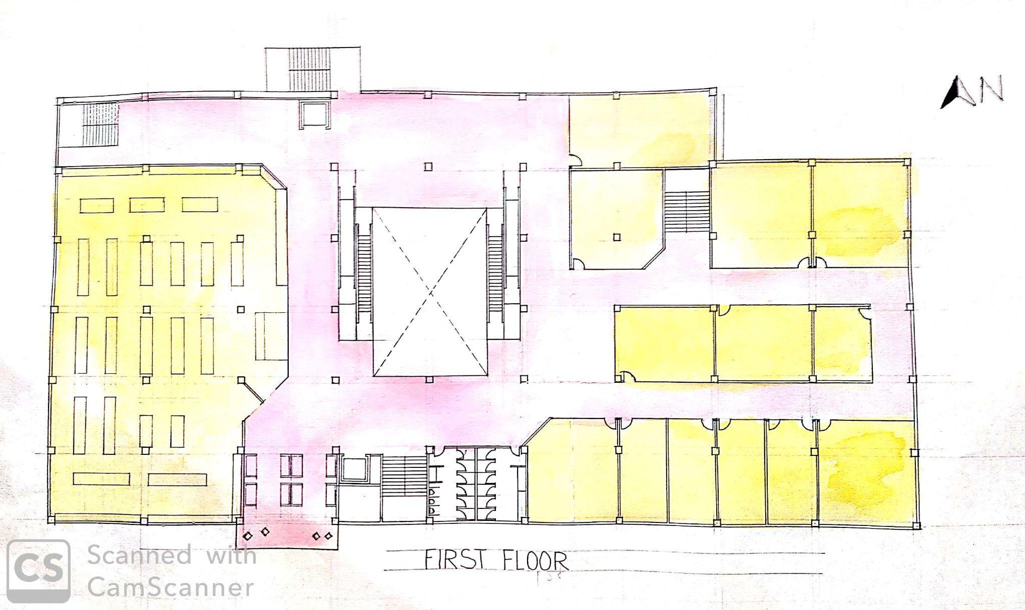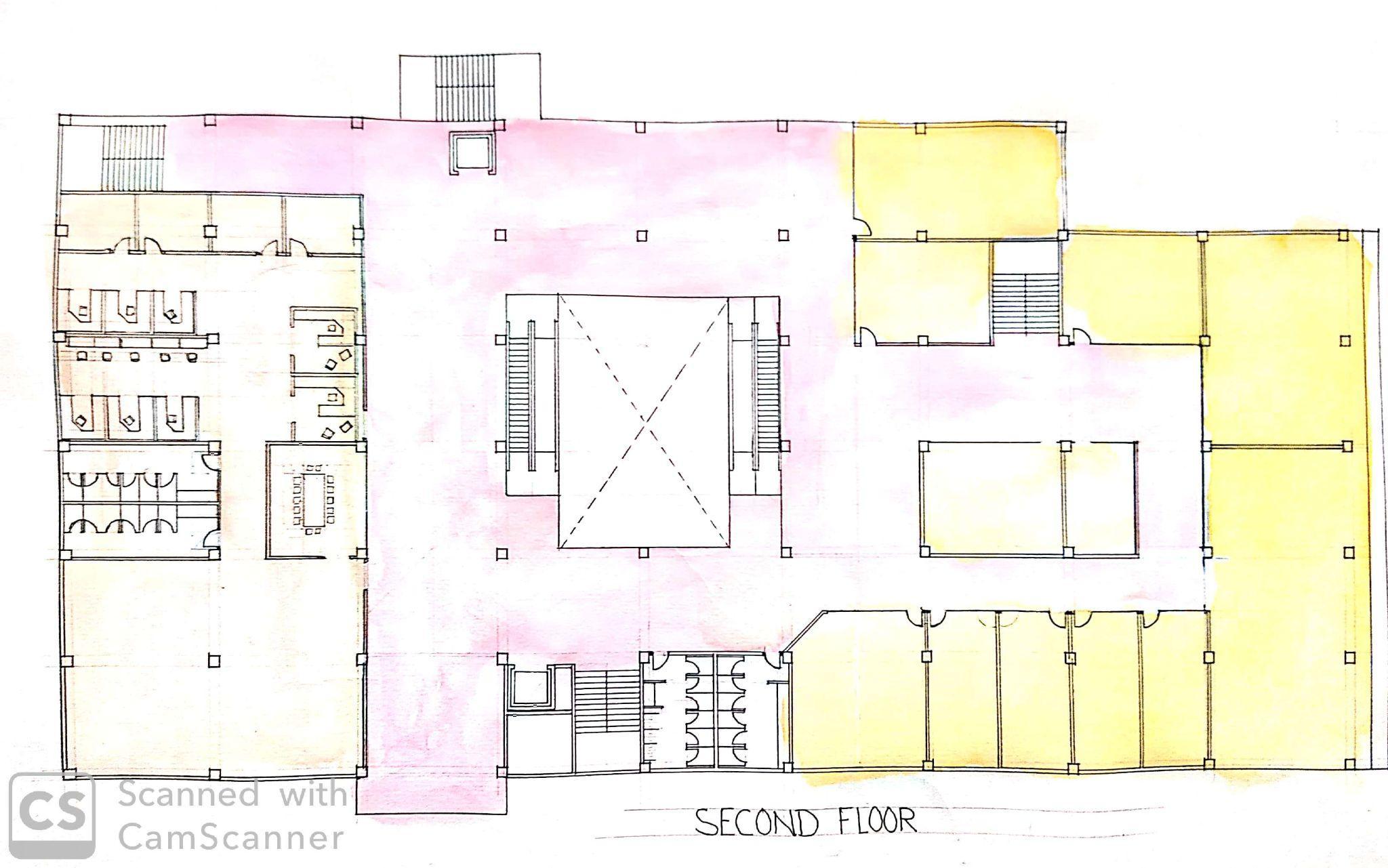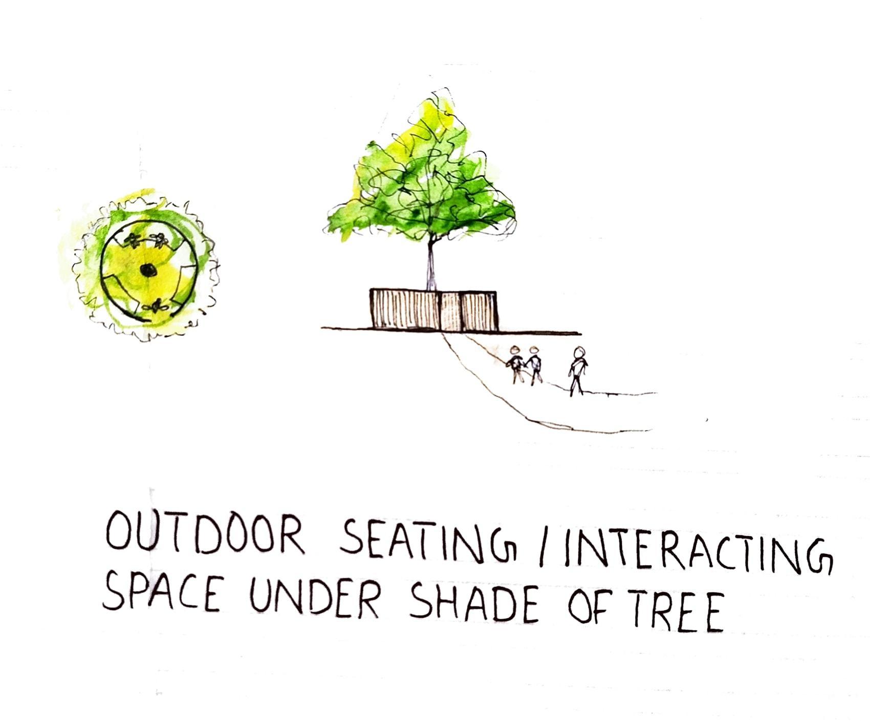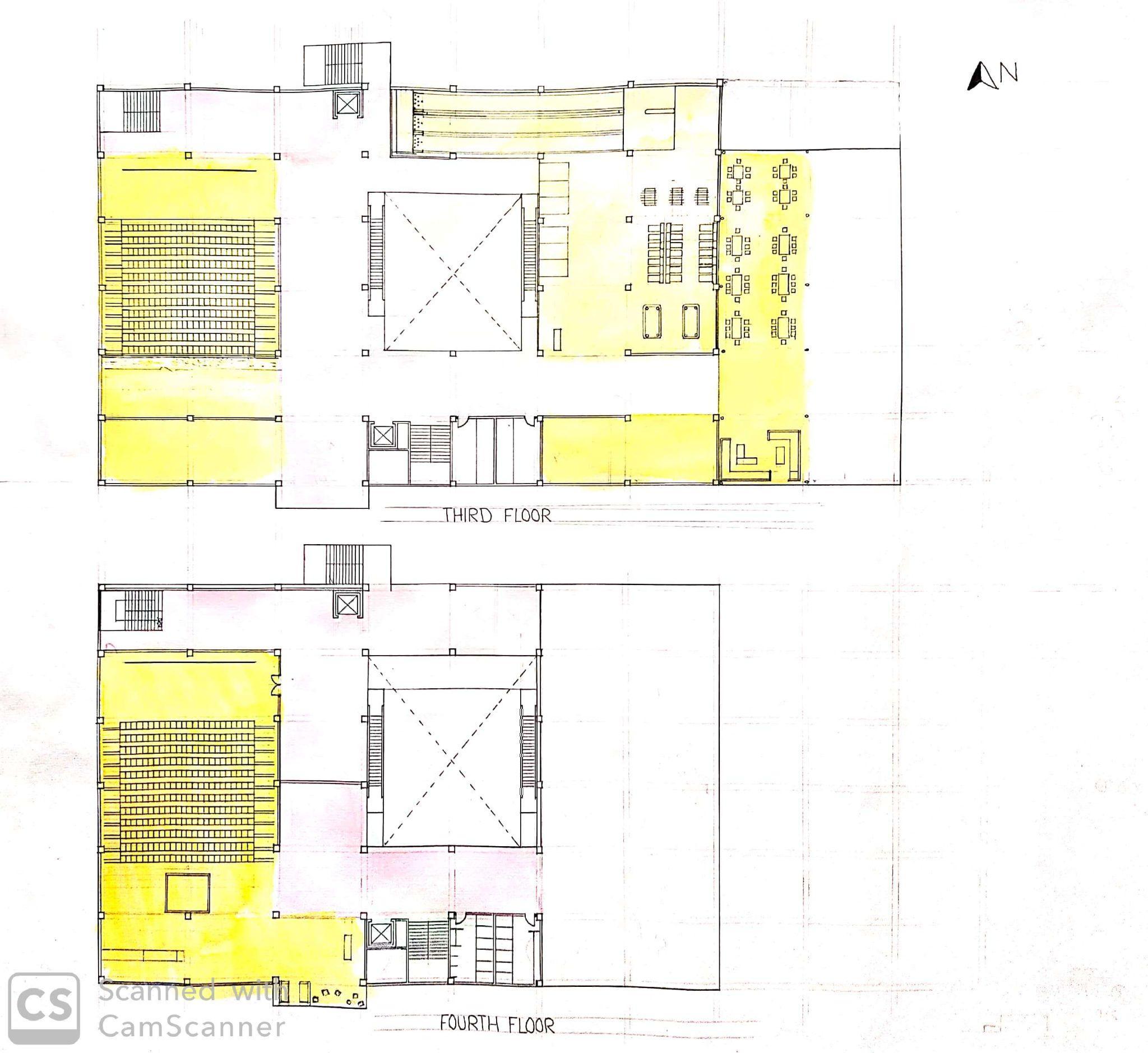 MAINLY THE SPACE IS SEPARATED IN 3 LAYERS: OUTER TEA SPOT FOR QUICK BREAK, INNER GATHERING SPACE FOR GROUPS AND STUDY SPACE ON THE INNER MOST PORTION FOR PEACEFUL READING WITH AN AMBIENT SPACE OF PUNCTURED WALLANDTREE
