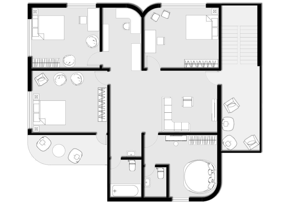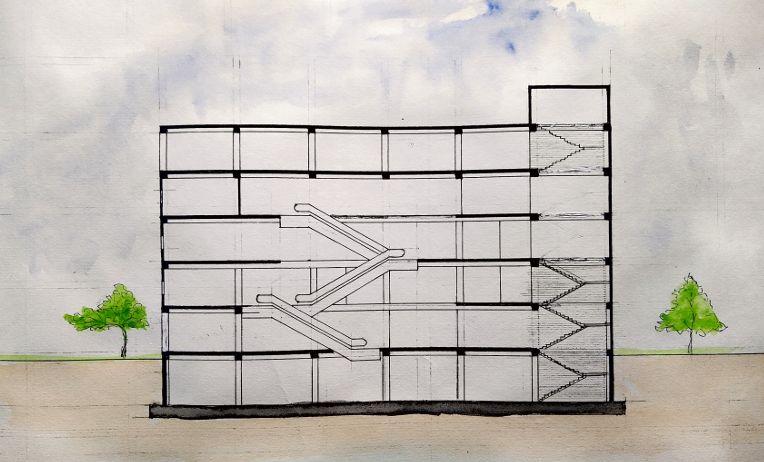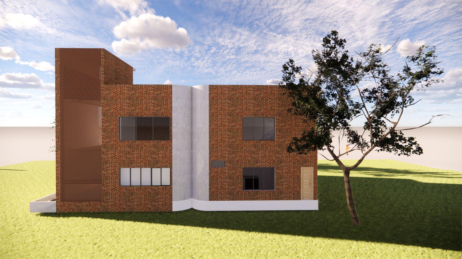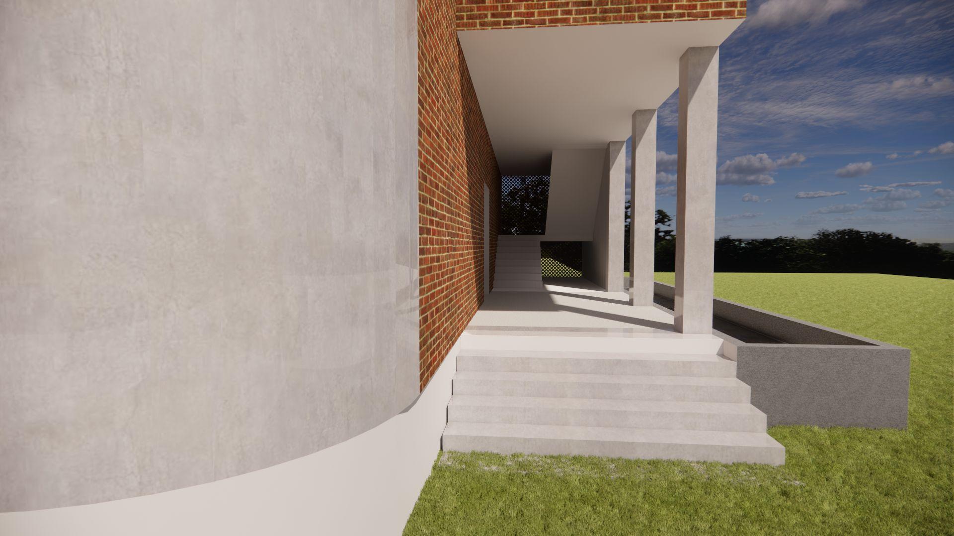 THE CORNERS ARE SMOOTHENED TO ALLOWS SEAMLESS TRANSITION AND THE CURVES ARE HIGHLIGHTED WITH CONCRETE DIFFERING FROM BRICKFACADEOFTHEBUILDING.