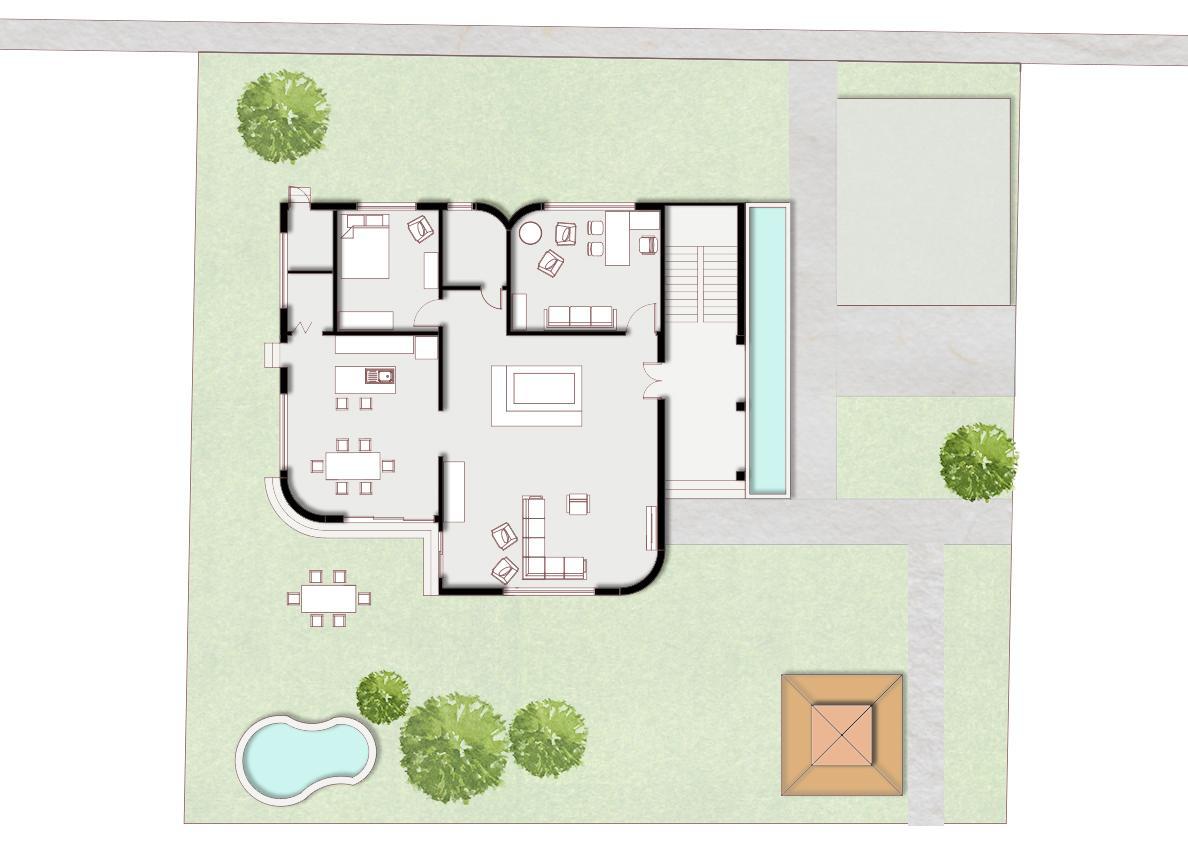 SPACESINANDOUTARECAREFULLYCREATEDTO ENJOY SOLITUDE AS WELLAS HOST GATHERINGS ANDPARTIES.