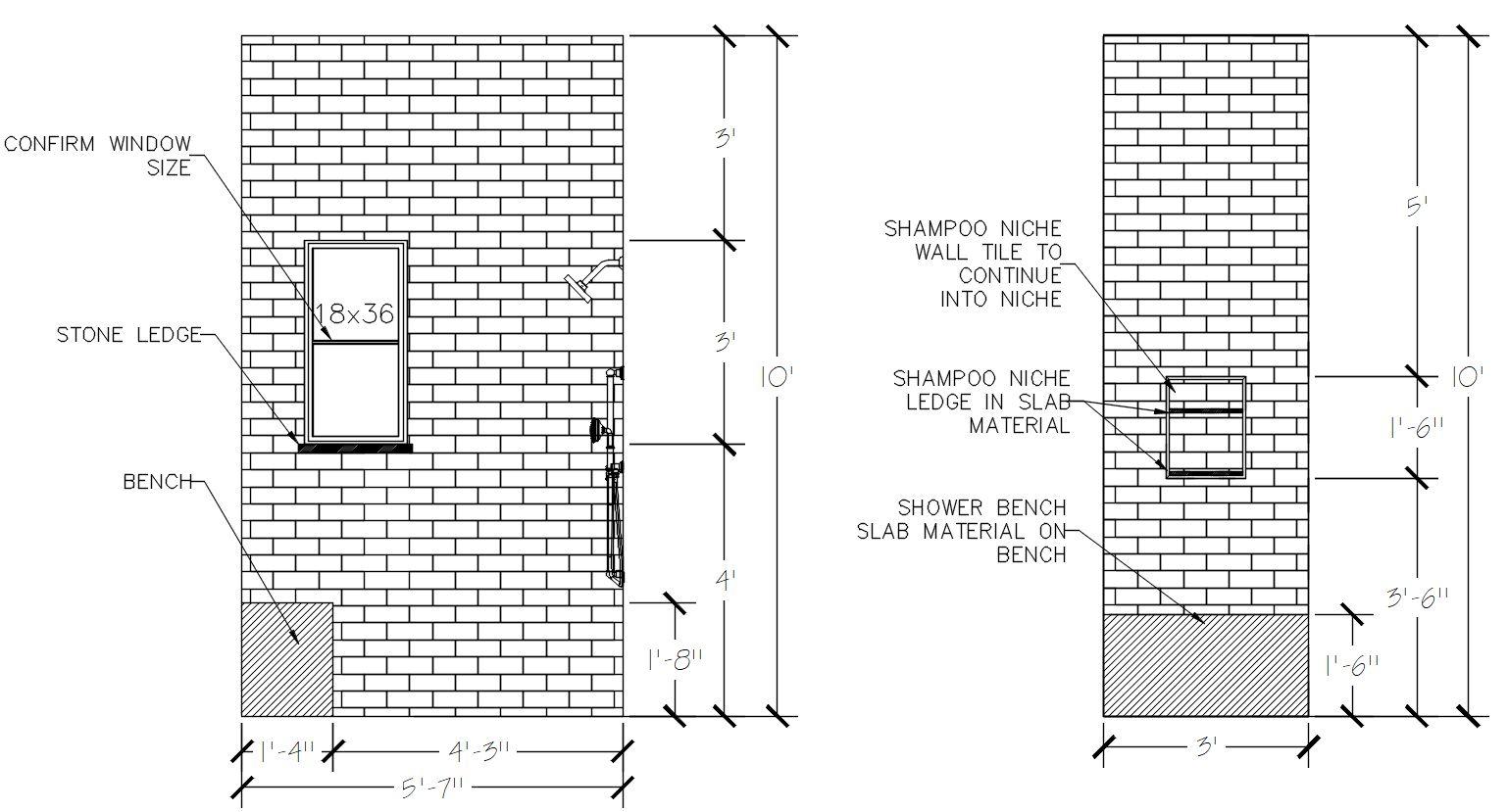 Shower Wall Tile, 2”x12” Installed Horizontally