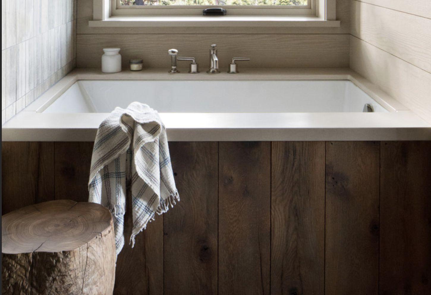 Wood Detail at Front of Tub Wood Stain to match vanity