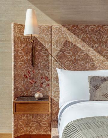 Wool & Silk Rug Under Bed Ottoman Upholstered in Fabric