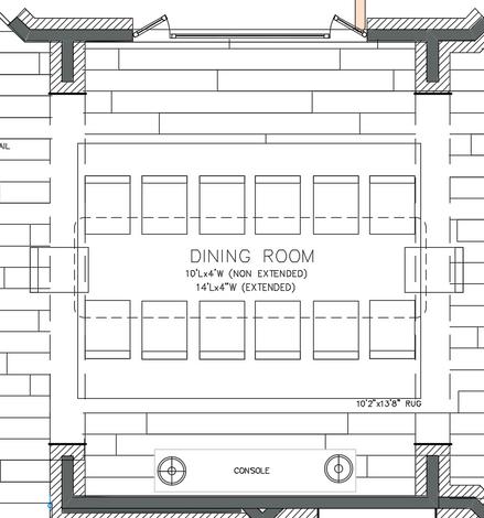Extended to 14’x4’ Dining Table (Shown Right) Seating 14