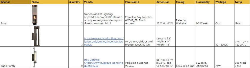 The Specification Worksheets are created to correspond with all aspects of the project. Each section notes are relevant to all pertinent information for location, manufacturer, finish, size, quantity and are provided to the builder and the homeowner. Purchaser of items are dependent on the agreement between all parties.