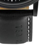 This attractive Ted Baker watch is made from black ionplated steel and is powered by an analogue chronograph quartz movement. It is fastened with a black leather strap and has a black dial. It also features a date function.
