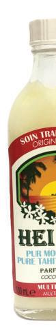 A multipurpose oil that can be used to nourish, soften and repair skin and hair. Composed of essential elements (fatty acids, omega 6 and 9, lauric acid and tocopherol) available in vanilla, coconut, tiare, 1000 flowers.