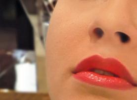 Using Lip Brush 21 (£31.50) apply Plum Lush Matte (£35) to the lip line. Fill the middle of the lip with Flame Matte (£35) and blend outwards. Finish with just one touch of Peach Absolut Ultra Shine Lip Gloss (£30.50).