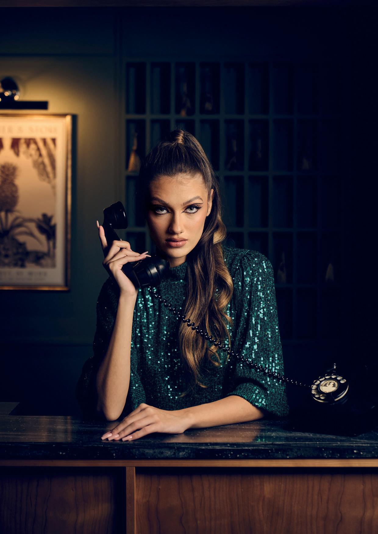 The Porter’s Store set the scene for our opulent editorial, Glitz&Glam. Mark Stephenson photographed Tilly Amy, showcasing the best of sequins for this season. Our favourite? Rixo’s bright pink mini dress.