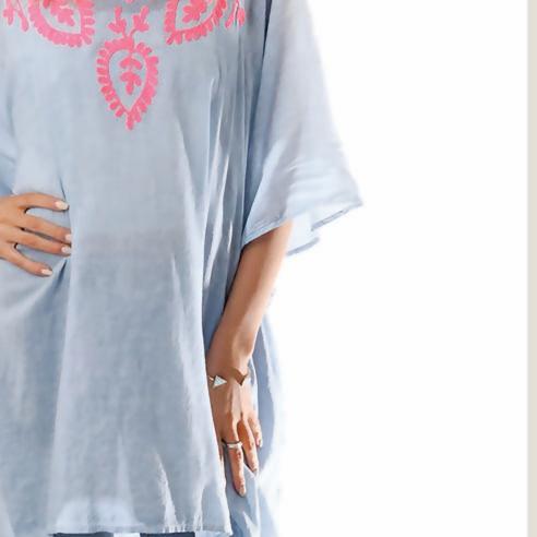 Embroidered floaty kaftans and star sequinned t-shirts are the order of the day! Dress up with jeans, along with an embellished, beaded clutch and wedges for evening chic or festival vibes!