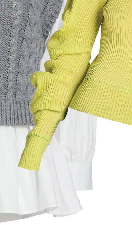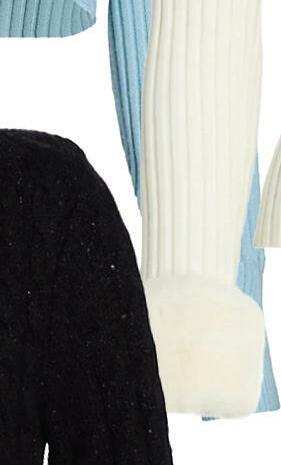 Comfy and cozy knitwear for cooler days ahead. WINDOW SHOPPING 1. Arch4, Clifton Gate Collared Sweater, $795 (saksfifthavenue.com) 2. Wayf, Faux Fur-Trimmed Zip Cardigan, $99 (saksfifthavenue.com) 3. English Factory, Mixed-Media Cable-Knit Sweater, $110 (saksfifthavenue.com) 4. LoveShackFancy, Chantria Cropped Tweed Cardigan, $495 (saksfifthavenue.com) 5. Bernadette, Camilla Wool-Blend Sweaterdress, $820 (saksfifthavenue.com) 6. Saint Laurent, Faux Fur Collar Sheath Midi-Dress, $2,990 (saksfifthavenue.com) 7. Versace, Logo Virgin Wool Knit Beanie, $250 (saksfifthavenue.com) 8. Galvan, Rhea Ribbed Knit Bodycon Midi-Dress, $725 (saksfifthavenue.com) 9. Milly, Twisted Cable Ribbed Skirt, $295 (saksfifthavenue.com) 10. Bottega Veneta, Lightweight Spiral Knit Sweater, $2,250 (saksfifthavenue.com) 11. Wayf, Still The One Feather Cardigan, $128 (saksfifthavenue.com) 12. Amur, Cruz Merino Wool Colorblock Sweater, $328 (saksfifthavenue.com) Knit Lightweight 9 11 12 3 4 5 6 10 7 8 12