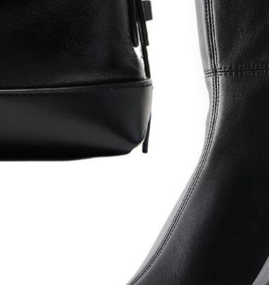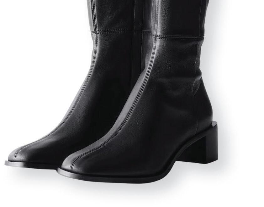 These knee-high sock boots, crafted from stretch nappa leather, feature a square toe, top-stitched center seams and a concealed side zipper. A sculptural, chunky block heel adds dimension to the boot’s smooth, polished silhouette. $399 | stories.com 1 2 3 4 6 5