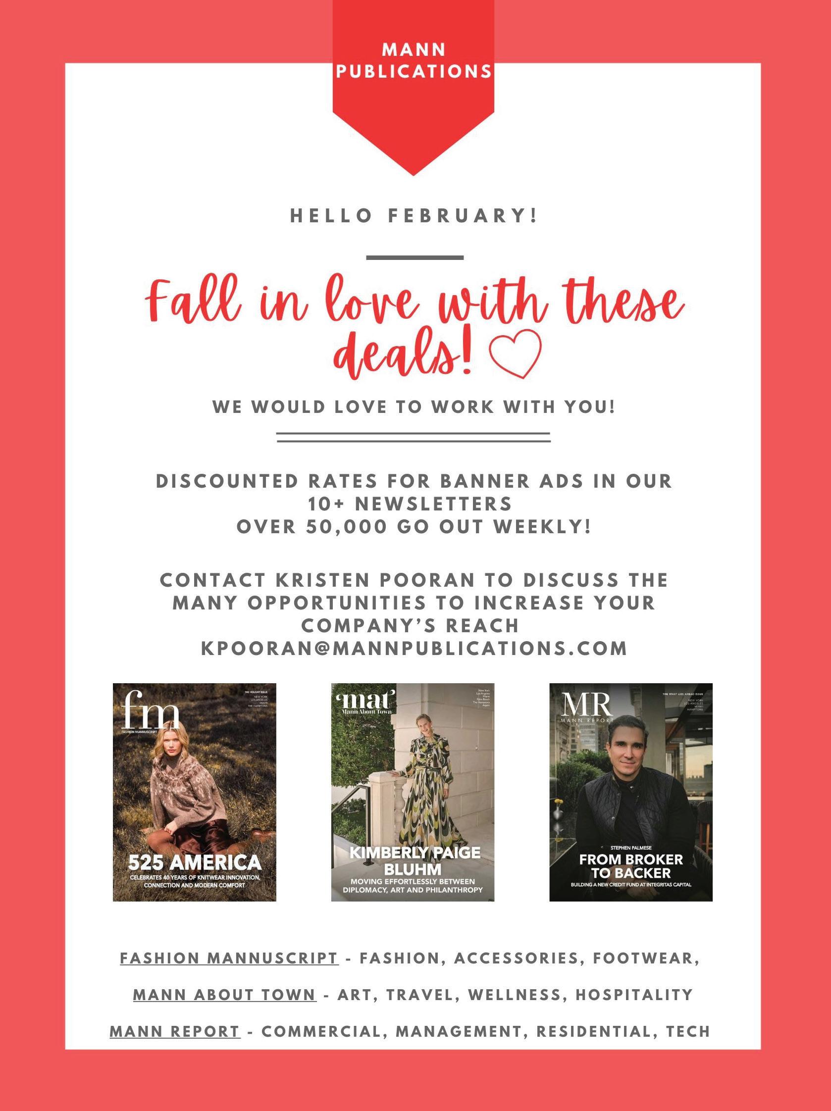 We at Mann Publications are always hard at work. We recently made significant adjustments and improvements, expanding our business model. We now have a dedicated newsletter division and continue to create newsletters that focus on various categories within the industries our magazines cover. The banner ads in the newsletters give great visibility to the businesses we work closely with, especially as our subscriber count grows.