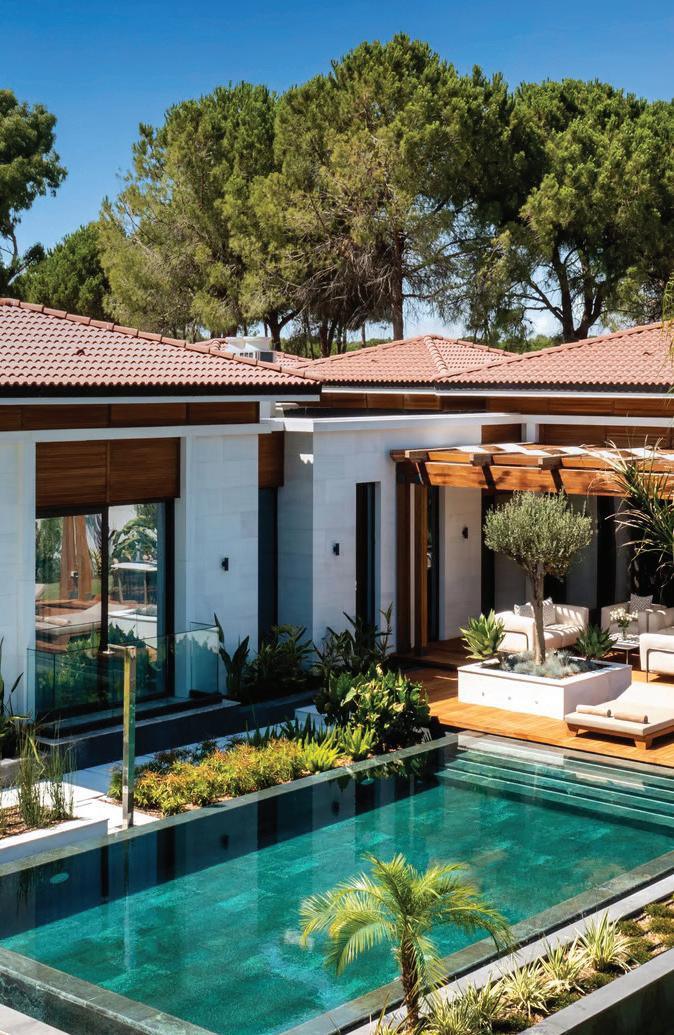 The concept of Blu on the Hudson was created by Blu Hospitality Group, led by Kosta Gianopoulos, who collaborated with designer Peggy Leung—whose previous projects include Tokyo DisneySea and being one of the lead designers of TAO Las Vegas—to fi ll the expansive 30,000-square-foot space, designing a dining environment generally reserved for Manhattan. The sprawling interior has a cozy lounge with a large fi replace and reception, segueing into a spacious main dining room with floorto-ceiling windows that provide views of the Manhattan skyline. Centering the room is an elegant white marble-topped bar where artistically crafted cocktails are served, and behind the bar is an array of dining alcoves with green tropical-inspired walls. Beyond that, are two private dining rooms with a beautifully