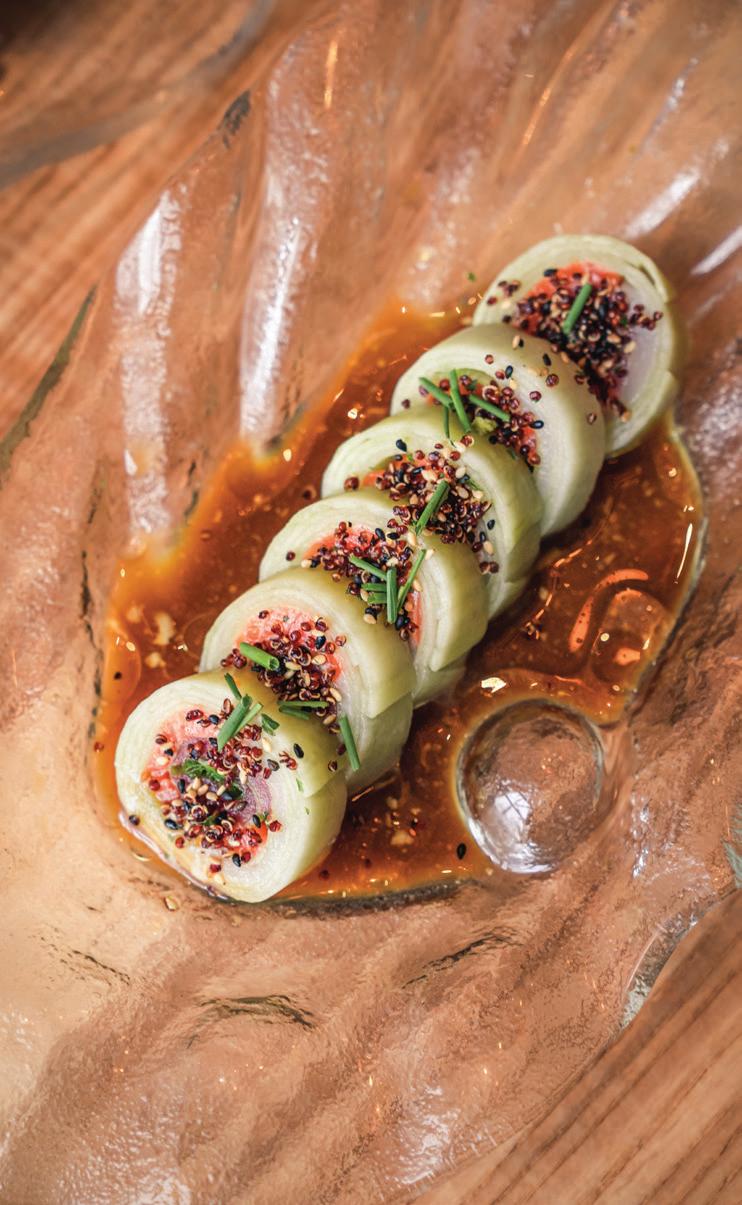 Blu Sushi Bar, just off the main dining room, serves sushi as well as izakayainspired cuisine with flavor profiles similar to those in the main dining room, created by Chef Ortega in collaboration with K Dong, who owns Hinoki Greenwich and Miku Sushi in Greenwich, Connecticut. The concept
