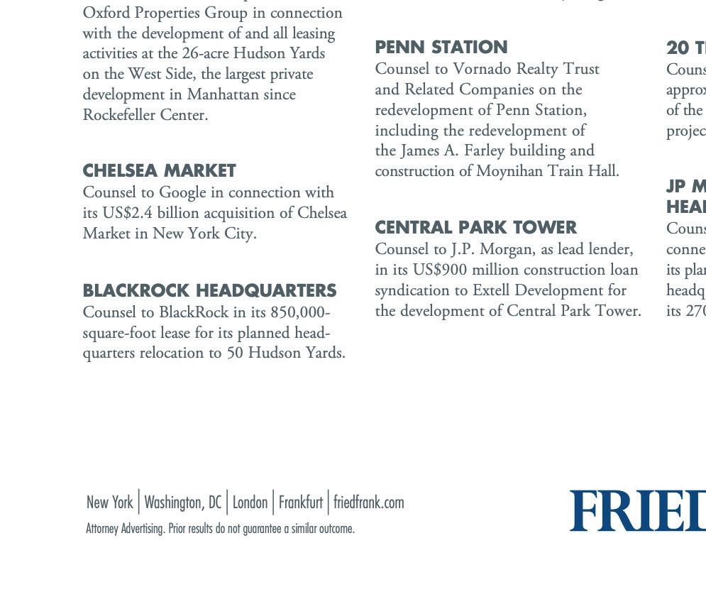 The law firm’s attorneys and their clients stand at the forefront of many significant real estate developments and projects across New York and throughout the United States, it noted.