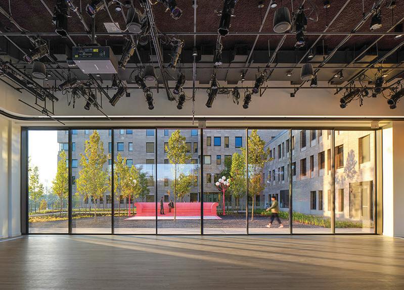 Mini Tower One’s threshold areas — ranging from an indoor terrace to an all-weather room— mitigate air temperature and reduce energy use while creating experiences that extend indoor and outdoor environments. In all, the expanded building requires just 12% more energy, which is more than offset by rooftop solar panels. Also on the roof is an edible garden.